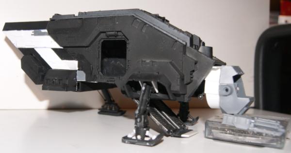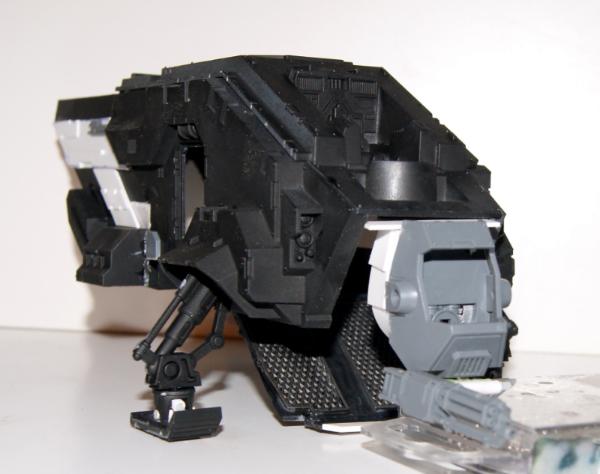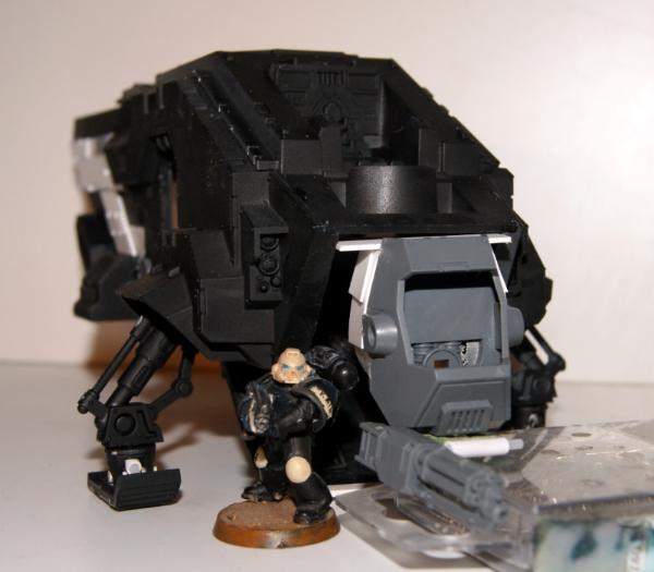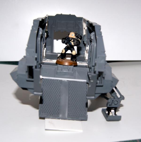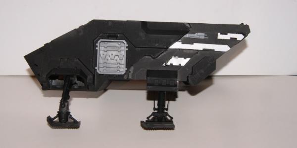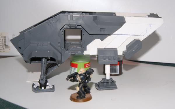 So, what do you guys think? It's pretty high on it's feet, but the side doors aren't really what matters to me - even without hurricane bolters. Front and rear ramp should be fine. The bit where the rear landing gear went will house a thruster, since there's no more room in front.