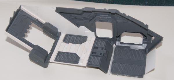 Next on the menu is detailing the in- and outside a bit, find a way to fit the landing gear inside the front thrusters, and how (and where) to attach the gun turret bit so it becomes an integral part of the hull.