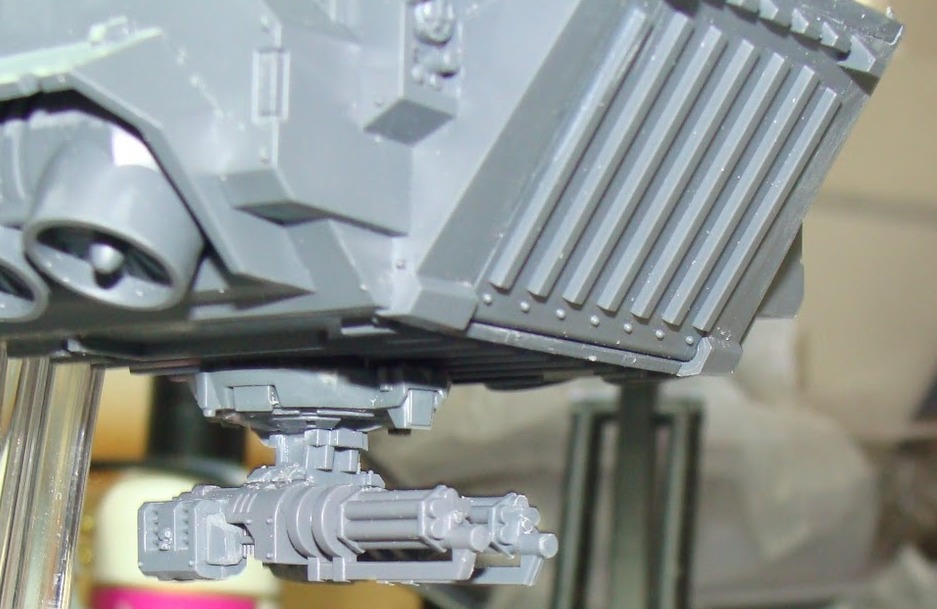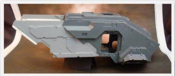I think the deployment ramp idea is interesting. From a game perspective, you aren't really losing anything by moving the access ramp door to the bottom, and the weapon mounting may become more forward, but you'll lower it so you will potentially lose some hieght advantage as a counter balance. I personally like the thunderhawk nod that the front of the stock vehicle offers, but I've seen a few forward mounted gun turrets that look appealing. I'll be interested to see how yours shapes up.