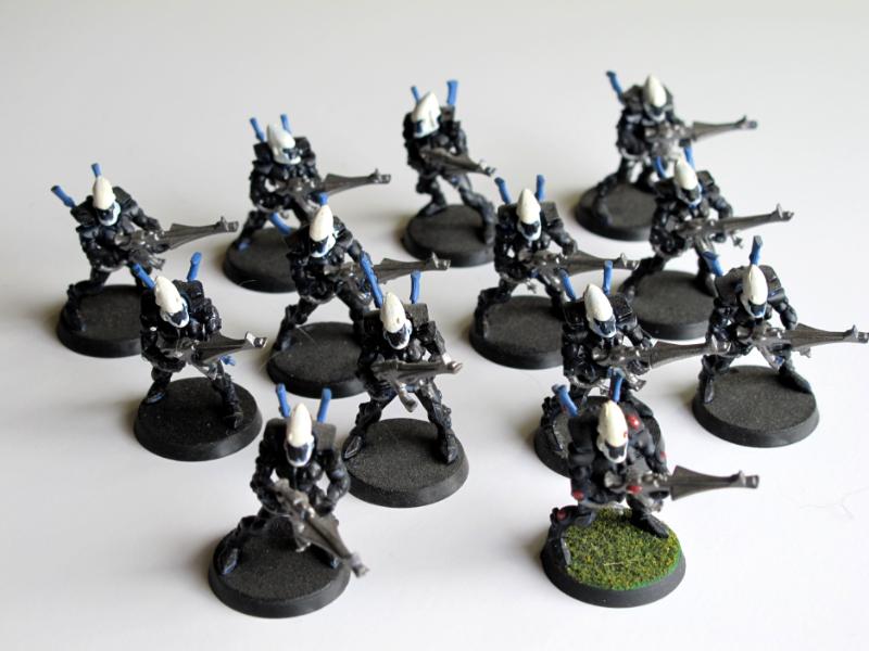 Unassembled or Magnetized Tau Battlesuits with all weapon options.