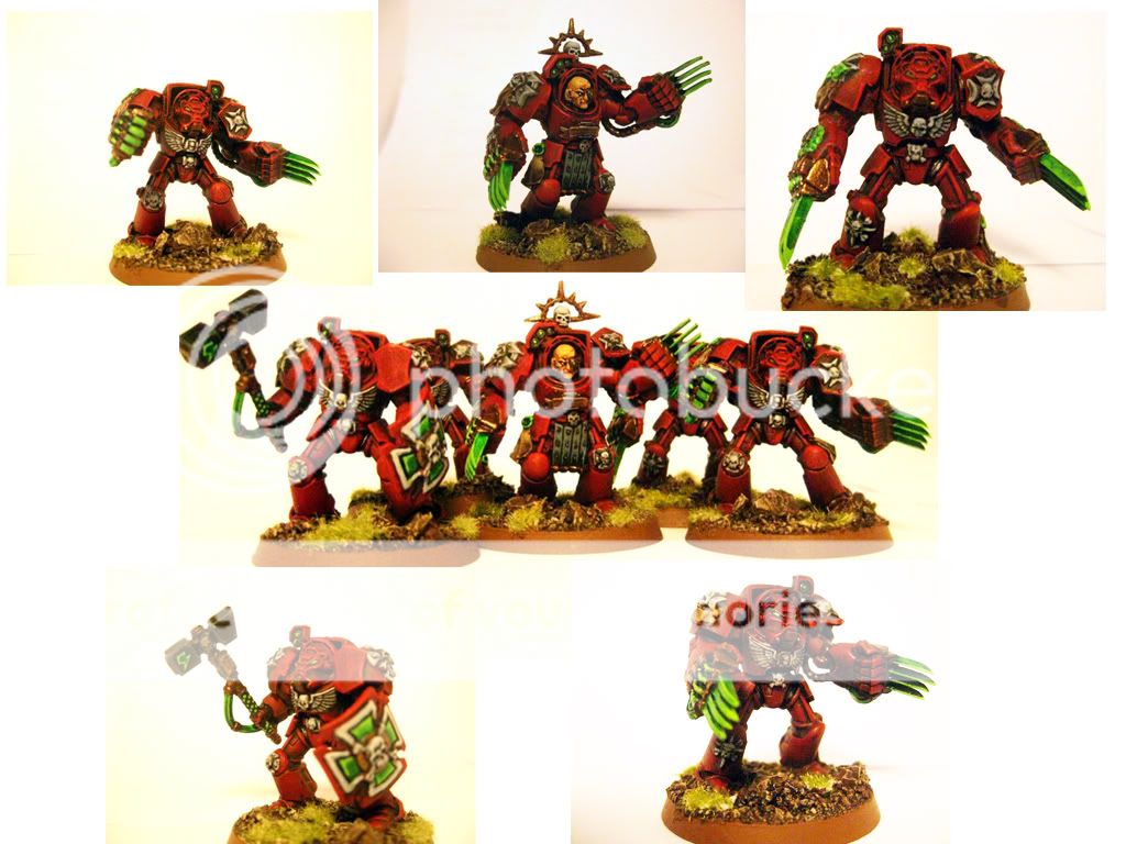for squads im undercoating in army painter dragon red spray, devlan mud shade straight onto undercoat, tidying up with blood red (a touch of red gore before blood red if needed to cover up any overuse of devlan) orange or orange and white mix highlight, generic quick n easy bolter (black- boltgun metal- mithril highlight) on most weapons (bolters/pistols/chainswords)