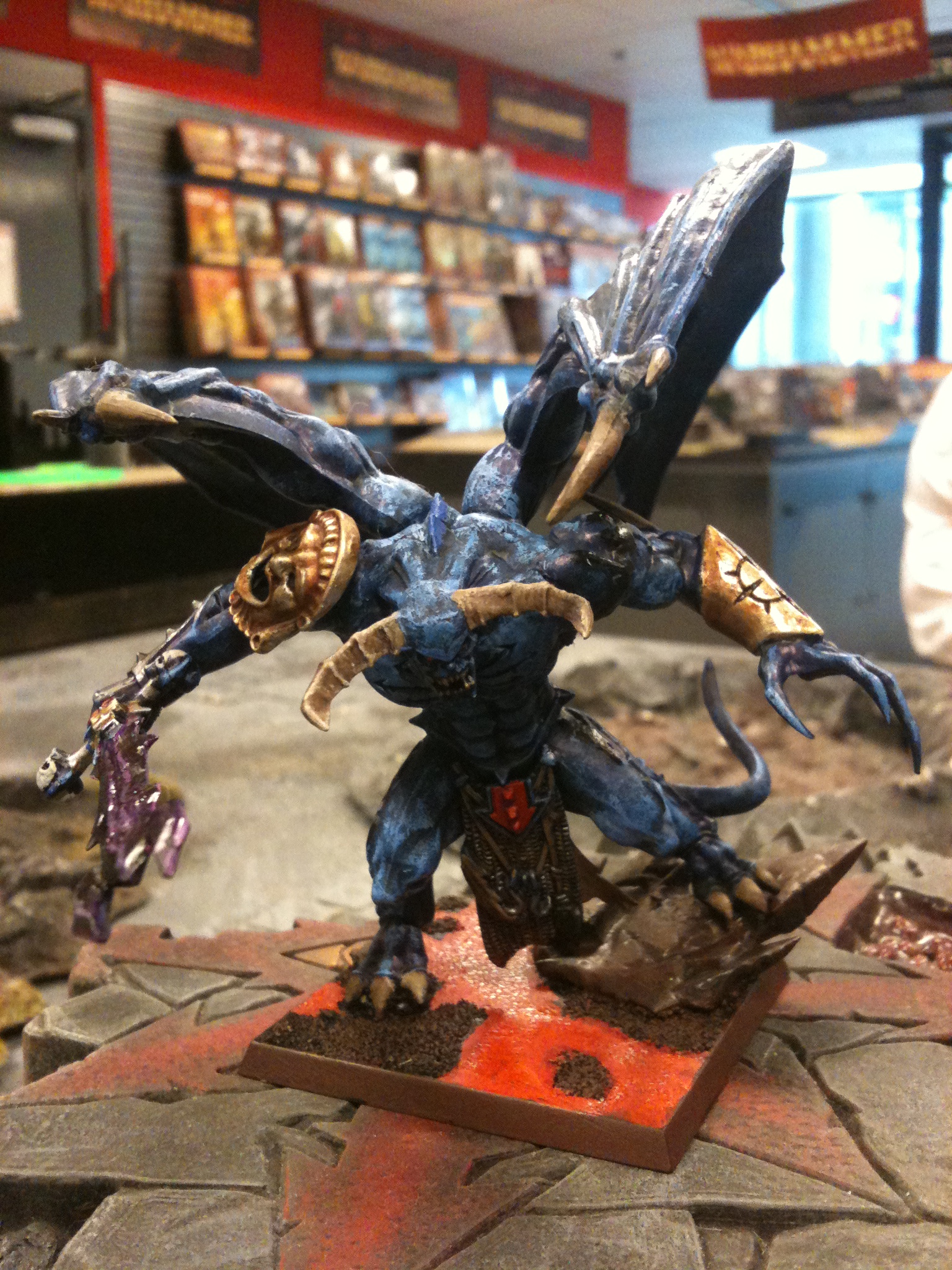 I was expecting a little more of an avian-look, but I like it! The crisp metallic and the bone look great with the blue/black flesh, and the base makes the whole model pop. Great work!