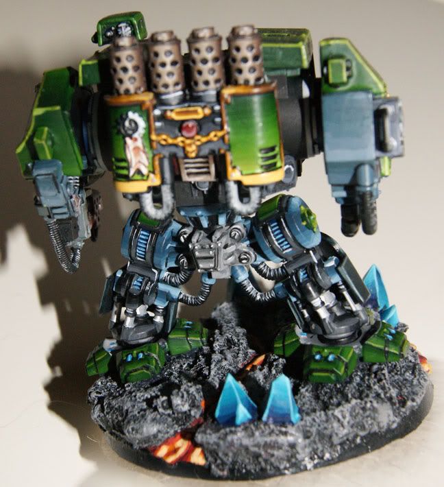 Exquisite green panels you've done! well done mrs Pyriel! I love the nmm on the legs, it really adds to the look overall of the model, the crystals are a nice touch and add a bit of color to the base, it's very,very controlled brush strokes you have shown on the panels, I don't know how you get them to be so even and straight so they blend perfectly!