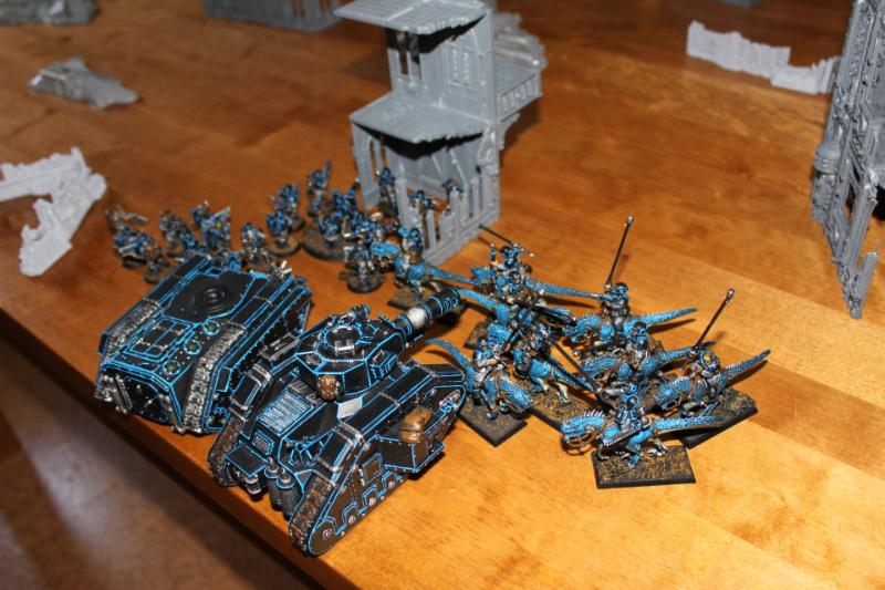 MVP: Armoured plasma cannon sentinel, really. It caused some casualties, including 4 blaster warriors in cover but most of all, it was a vehicle which couldn't be destroyed in close combat by anything short of the cronos and so affected my opponent's tactics. Other than my sentinel, my leman russ performed very well.