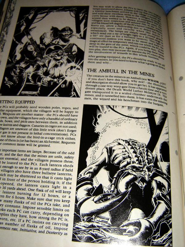 There was a WFRP adventure printed in WD which had an Ambull from 40k appear in the Warhammer world: