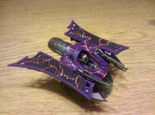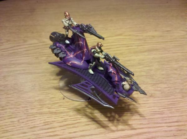 Next up, Venoms. Pretty much my entire raid is built up around all kinds of Venoms. My philosophy is that if we're going to Raid, we're going to take what we find and put it to use. These two are built from various Eldar scrap. The first is an augmented Reaver jetbyke, and the second is essentially an oversized skyboard.