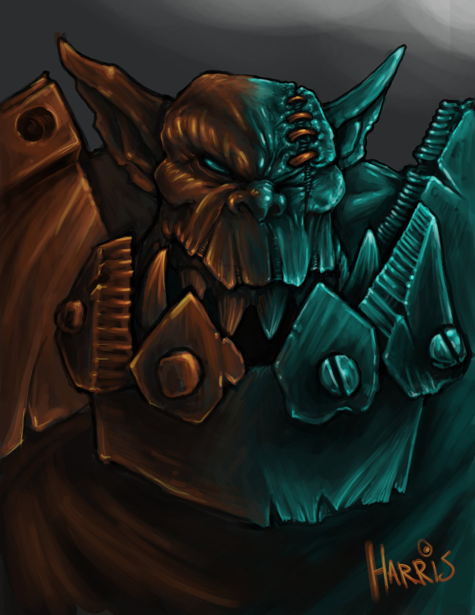 I was bored last night waiting for my fresh ink to dry on my orks so i decided to crack open Photoshop. Worked on a Cintiq 21ux(such an awesome tool). Took about an hour and a half to complete.