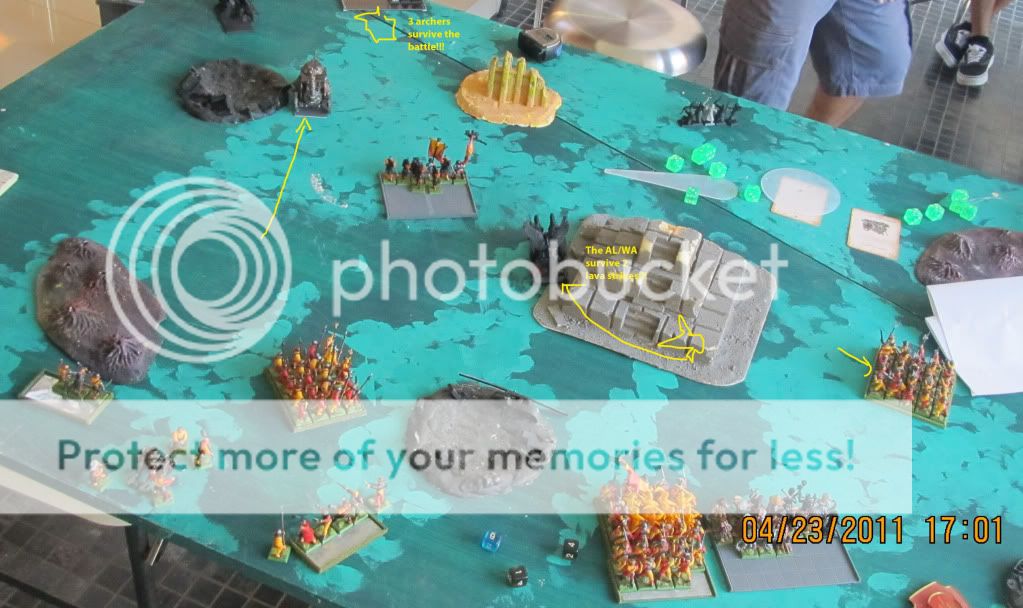 The last turn is uneventful as the archers continue to flee, although the volcano spews lava and hits the arch lector twice, Sigmar blesses him as AGAIN he and his ride pass all armor and ward saves!!!
