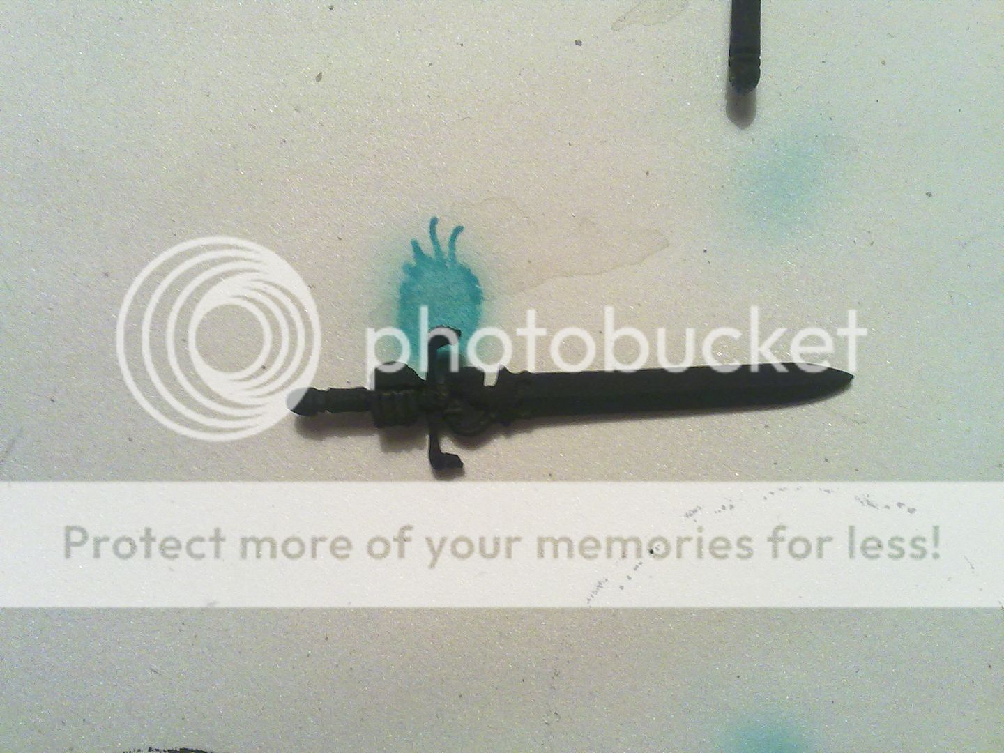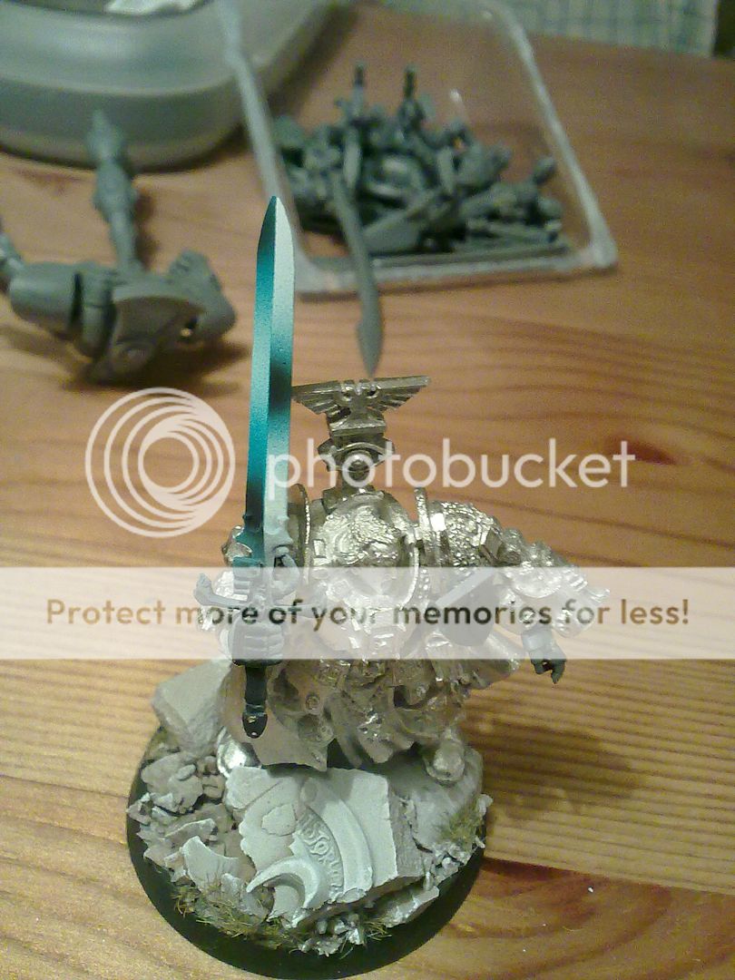 Like many others I've been lurred into getting some of the rather fantastic new GK models. I also got myself an airbrush as a long time wish of mine and thought I'd try out some new tecniques. So here's a teaser of what the squad will look like, the armour is not done at all, only the sword is pretty much done.