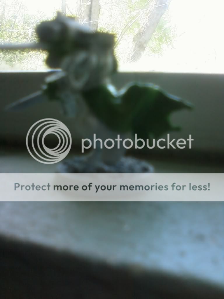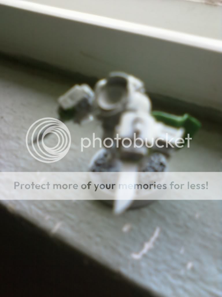 Just got done with my last class, so i'll have some time to do this... oh yes. I've been looking at it and i think i can still pull it off with out making it look too busy. I'll have to add a tad of green stuff to the bottom to make the blade's have a bit more to hold on to as a foundation as well as making it an even base. I'm going to borrow a camera so that i may take better pictures. Again im realy sorry about the ones above, all i own is my samsung phone.