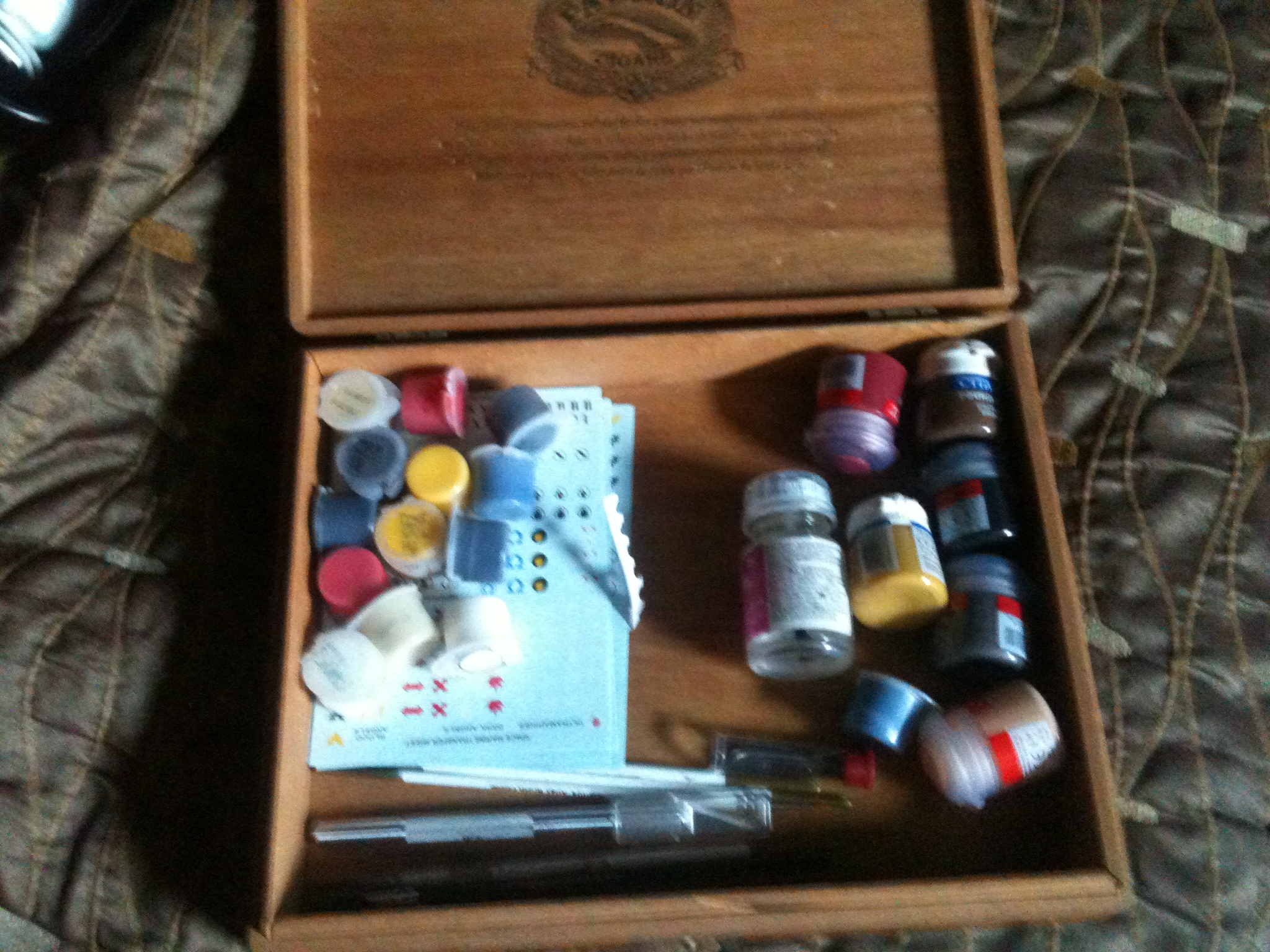 not all my paints are in here but this is the box i keep them in haha.