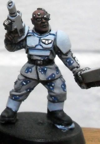 tried this on my termie sergeant and it worked great, i already had my own techneque but this is far easier. i did change the recipie a bit, as space marine faces have deeper receses. i added a very watered down wash of ogryn flesh after doing all highlights, and then added the last highlight again. thanks for the tips