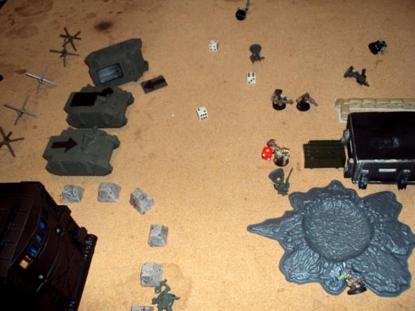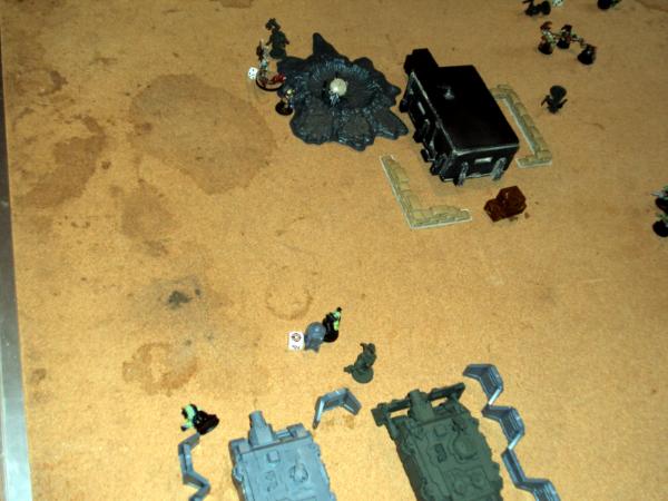 Grimmly and friend fired at the tank once more and did nothing. Big ass bomb and friend moved closer to the vindicators. group2 moved and let loose on the rhino near the big bunker. Blew off a storm bolter.