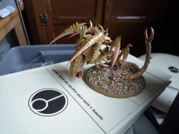 I cut the middle half of the long tail out (which I used for my Tyrannofex) and built up the base with clay and putty to indicate the creature being half underground.