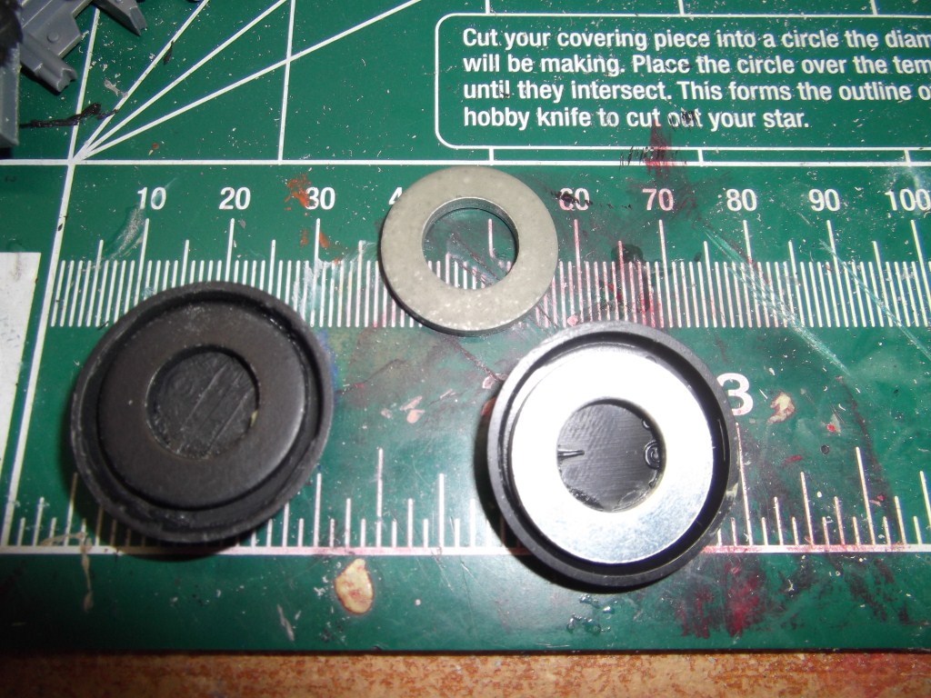 For my larger bases I use what they call “fender washers” they have a smaller hole but you can get them in the larger diameters for 40MM & 60MM bases.