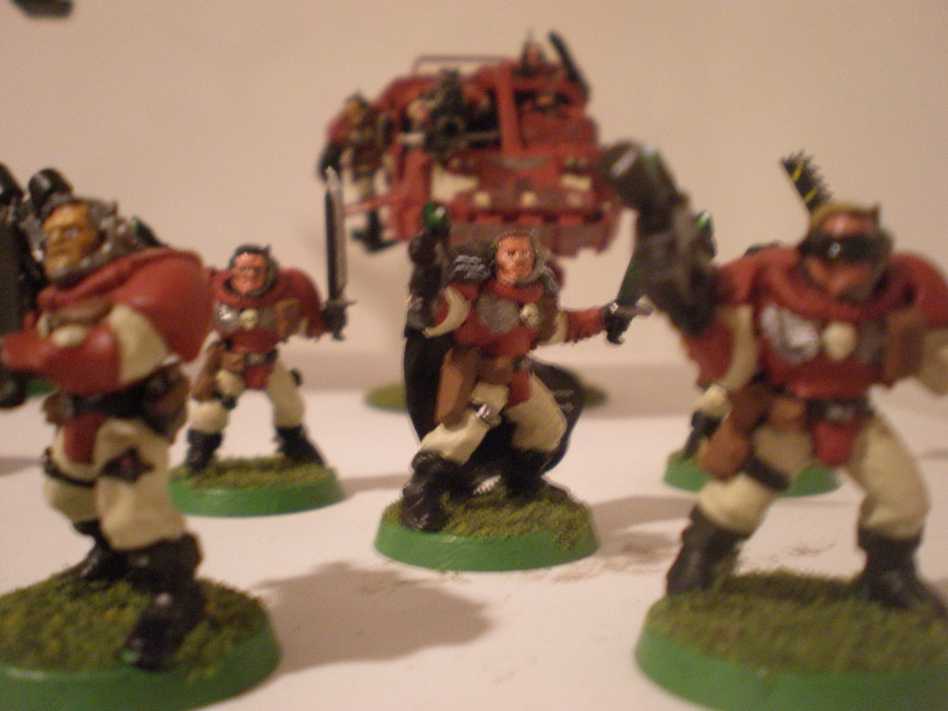 hey dakka, ive been painting and modeling for awhile now, but ive finnaly decided to create an account here. so anyway, ive recently started a space marine army and to be different i chose to play a crimson paladin army (page.30 of the SM dex.) i decided on a scout based force. this is my interpretation of the crimson paladins, the paint i created i think is suiting. i would like youre opinions, suggestions, and comments.
