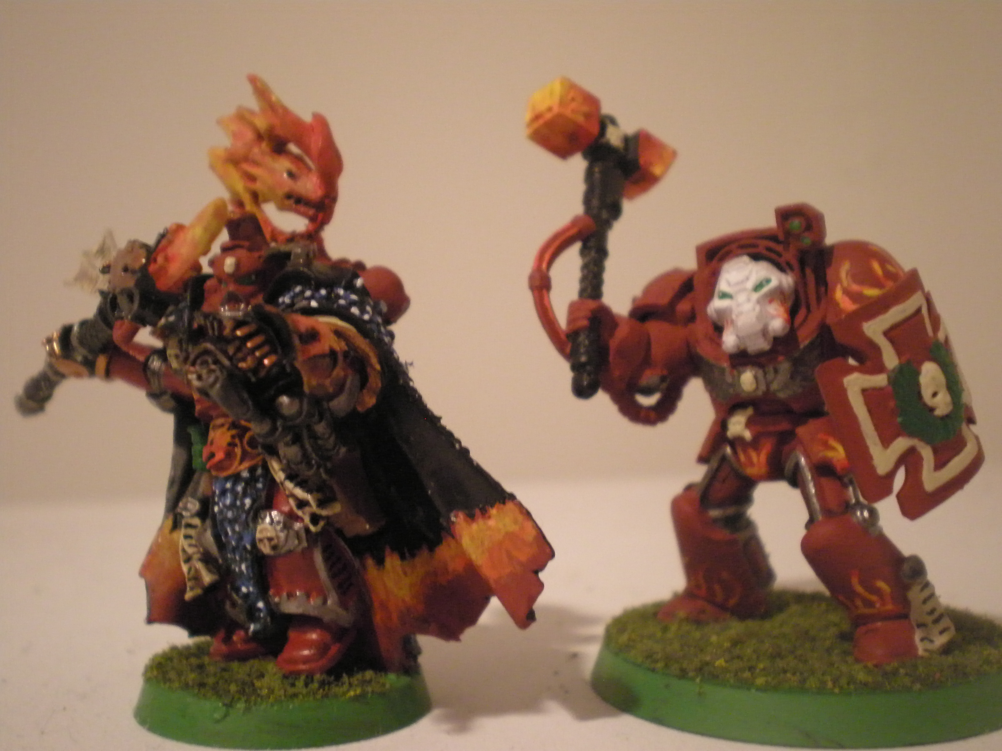 "Liuscas glared at the slowly rotating dusty brown globe from the viewport of the Night Lords battle barge Tempustus. It had been eight long months since he and his battle brothers had departed the holy fragment of ancient and holy Nostromo, at first he believed this discovery to be a sign of a gift of the gods, but alas it was nothing but a curse as the inquisition had soon caught wind of his ships presence and the inevitable encounter had expended the 23rd legions dwindling resources even further. At the battle's climax Liuscas was forced to withdraw his forces and the fragment itself was lost. This was not a total loss however, for it seems the gods did manipulate his fate during those days. For on the fragment the Night Lords 23rd had encountered a new ally, other traitor marines, clad in the armor of the Space Wolves chapter, they were defectors and heretics alike, marooned on that forsaken rock for their crimes. But flourish they did, and when their "prophet" Kadrak had met with Liuscas an alliance was bonded. This was not without taboo though, Kadrak's company was rife with the corrupt of Khorne, many marines had fallen to his call, becoming brezerkers, raving madmen whose only purpose was to spread bloodshed in the name of their diety. Even now, as he gazed out of the massive viewing window aboard his ship, he could hear the faint warp screams of those individuals chained to the walls in the hangar bays, for if released they would attack friend and foe alike, and although Liuscas despised the humans who lived upon his vessel, he knew that they were all skilled mechanics, artificers, serfs, and pilots and could not do without their aid. Kadrak, was a more scheming individual however, touched by tzneech as well as the blood god. In visions he would receive guidence from the runious powers and was even able to call an avatar of the blood god to his aid, for he was not someone to be trifled with. His scheming caused Liuscas to question this alliance on more than one occasion, he knew Kadrak was a valueable ally, but did not trust his motives. Liuscas still sternly gazed at the planet held before him, determined to end its pitiful existence as an imperial world. The bulkhead behind him shuddered open breaking his concentration. In strode the form of Anasad, once a librarian of the Night Lords legion, but now more of a magnus of sorts. Anasad bowed before Liuscas "My lord we have continued to receive visions from the planets surface, they are still trying to contact us." Dismissivly Liuscas scoffed "Do they mistake us for some imperial vessel?" No my lord, they seem to recognize us as servants of the four, our scouting craft have made note of small scale skirmrishes along the planet's surface." Liuscas's tone swiftly changed "Who are they and what might they ask of the power of the four." " There is a man my lord, he appears in our visions, mine, Quintis, and the prophet's alike, a blind man shouting praises to the four, rallying the pathetic humans down there to his call, asking the warriors of the gods for their aid." Behind his helm Liuscas began to smile, this was what the gods were telling him to do, that planet down there would be the killing field and victory his prize. "Ready the dreadclaws, I want 1st and 5th claw deployed and contact made with this usurper, for the gods are calling brother, and we are more than happy to meet their desires."