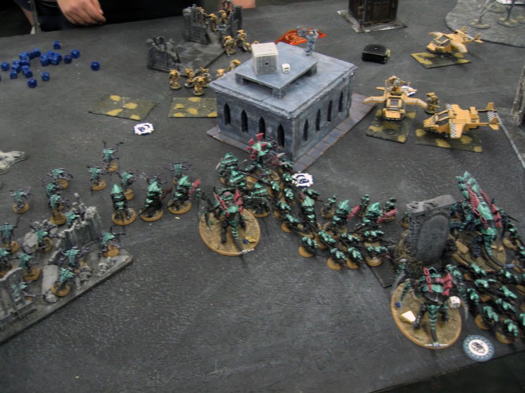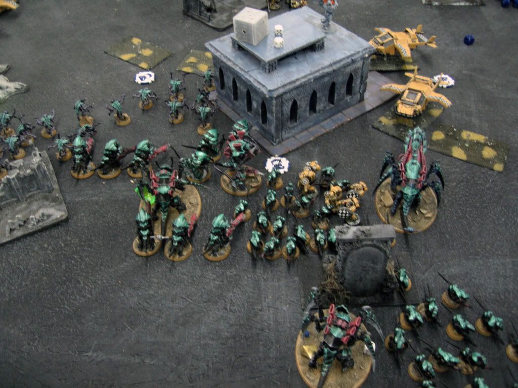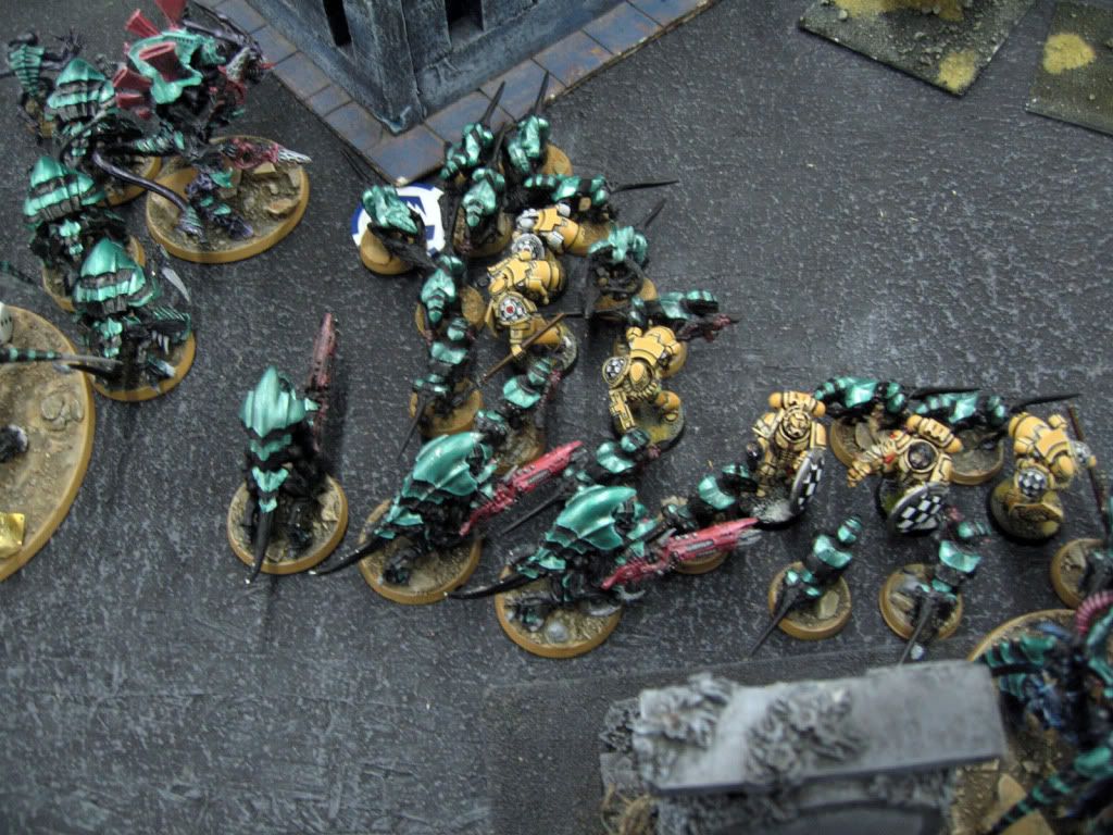 Aaron was a great opponent. He really took mephiston running through his lines like a champ. Mephiston really was the hero of the game for me. He was still alive at the end of the game with only 2 wounds on him.