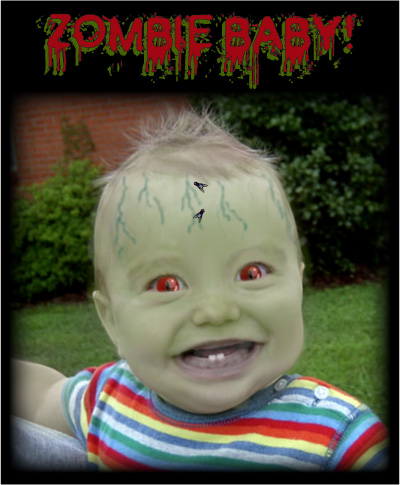 The zombie baby has to take a time out: Because zombie dad is angry.
