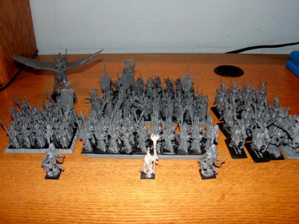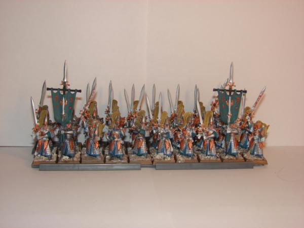 A commission trade came in today, a couple of Island of Blood Sets and some Phoenix Guard, and I'm looking to get the 102 models painted up and back to they're owner in a month. It was stated just to get the needed colors on, but I'm aiming to do a bit better and would like some feedback/support as this is my first major job and the first one I've set a timeline for. Date Received: May 31, 2011 Date Due: June 30th, 2011 I got started tonight on the Swordmasters. Bases are sand/shell and awaiting critique from Uriel's Flame. Rough and very ambitious Schedule: 10 swordmasters 10 swordmasters 8 swordmasters 9 Bowmen 9 Bowmen 10 Phoenix Guard 10 Phoenix Guard 6 Reavers 10 spearmen 10 spearmen 6 Reavers 2 Mages High Mage Eagle