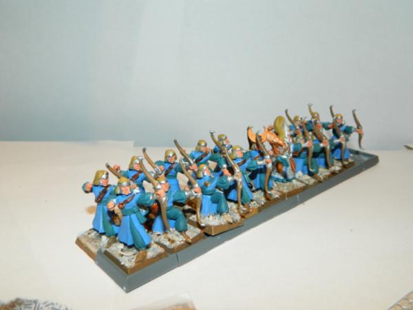 Thanks! It's definitely a challenge, but my time per mini has improved drastically while quality isn't suffering and I'm learning a lot about the painting business. If anyone has any inquiries into it I'd be happy to take on another after this. I'm still stuck between a rock and a hard place at the moment financially and any help I can get and can provide in painting will be wonderful. I seem to be behind schedule a little bit, I've got the day off though so I'll catch up. Being nocturnal makes 'days' interesting since they end at 9am instead of midnight. Anyway back to the painting table for me. I've got the last bit of Swordmasters on the block and I'm going to try to get ahead with all 18 bowmen tonight.  All 28 of them. Working on the Bowmen now.