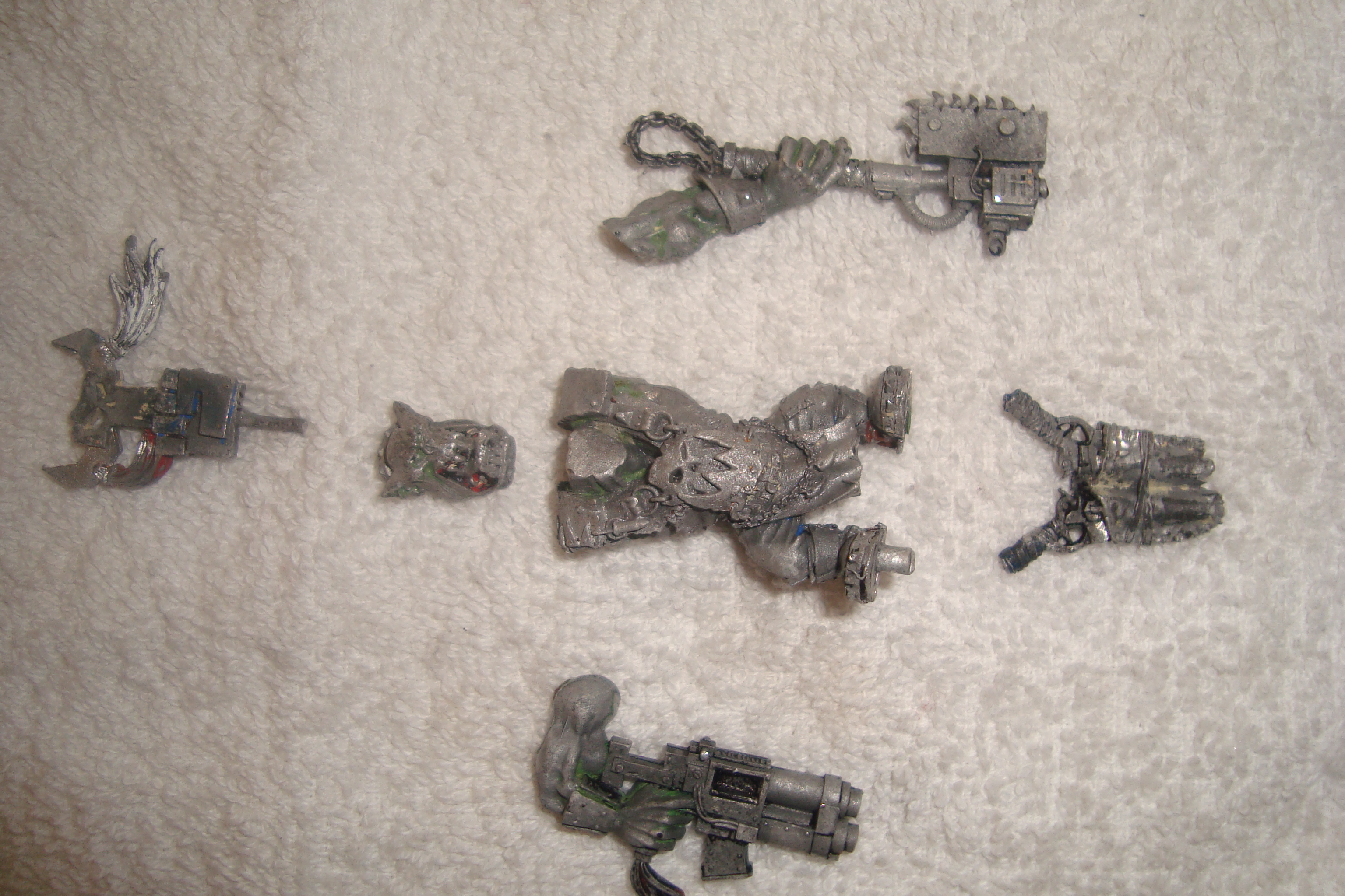 I've got a few orks, old metal warboss with chopper, heaps of boys, metal nobs, zzap guns, old school runtherder, grots, flamer, heavy weapons, currently in a bucket of simple green, can post photos of them underwater if you want.