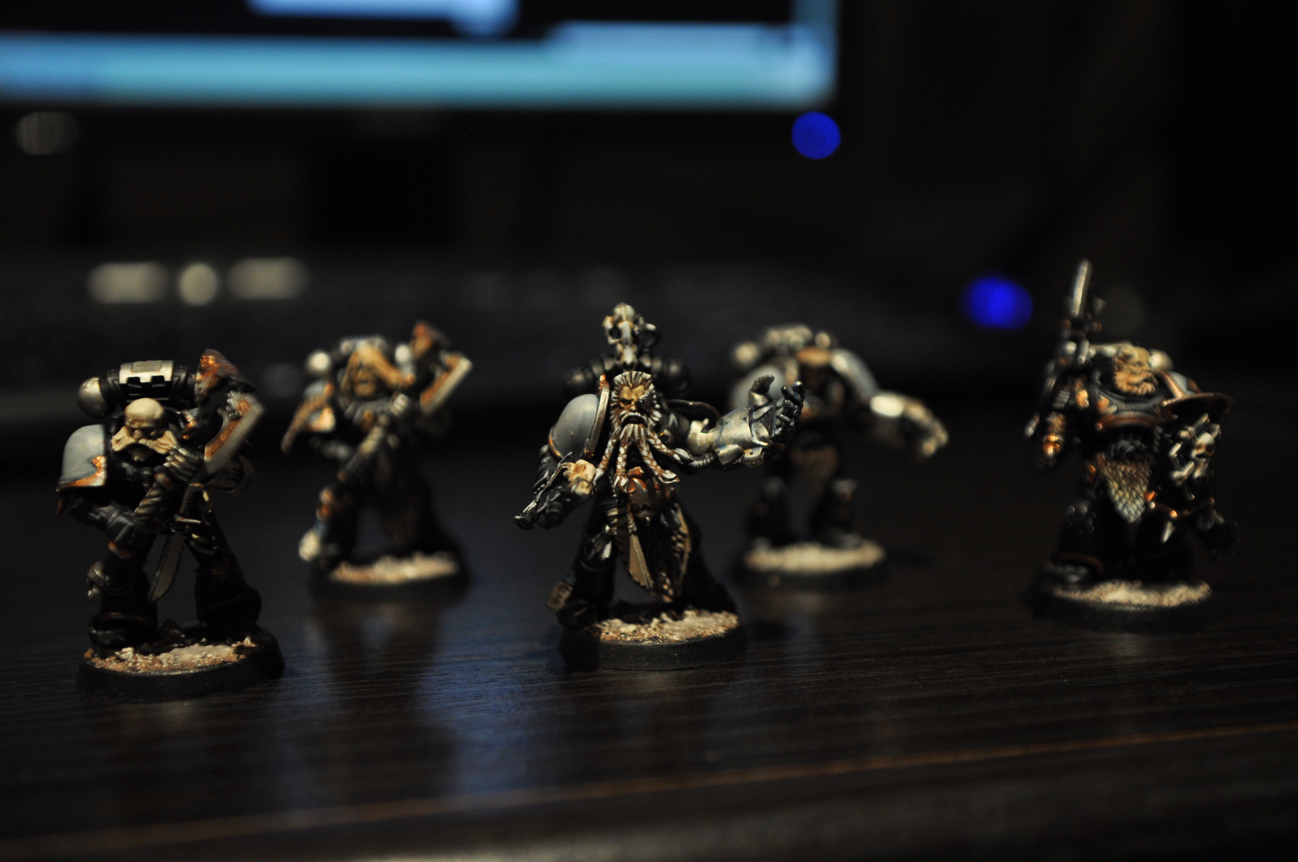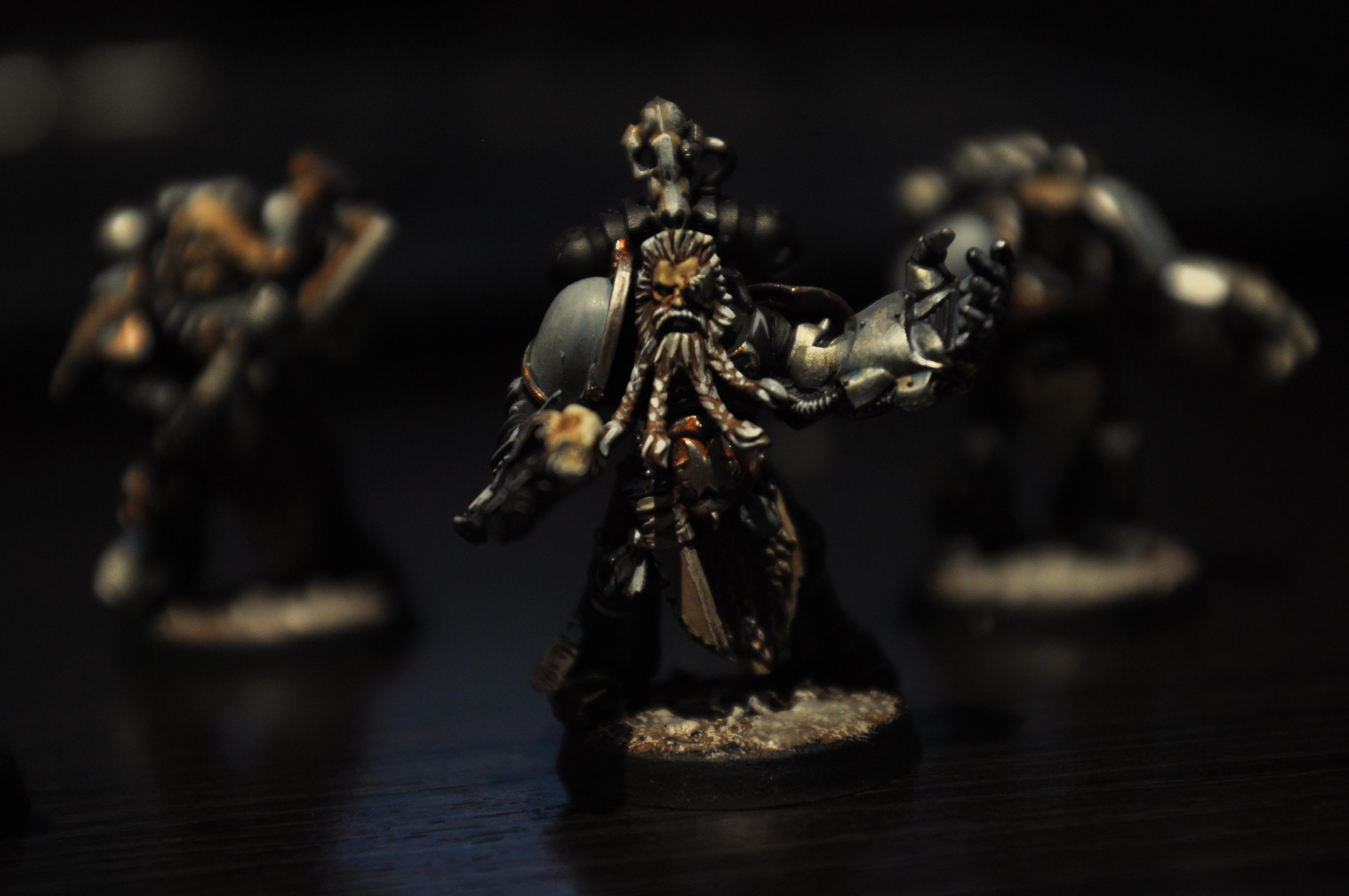 All of the Wolf Guard are finished, the Rune Priest needs his base finishing, and the Captain is half done.
