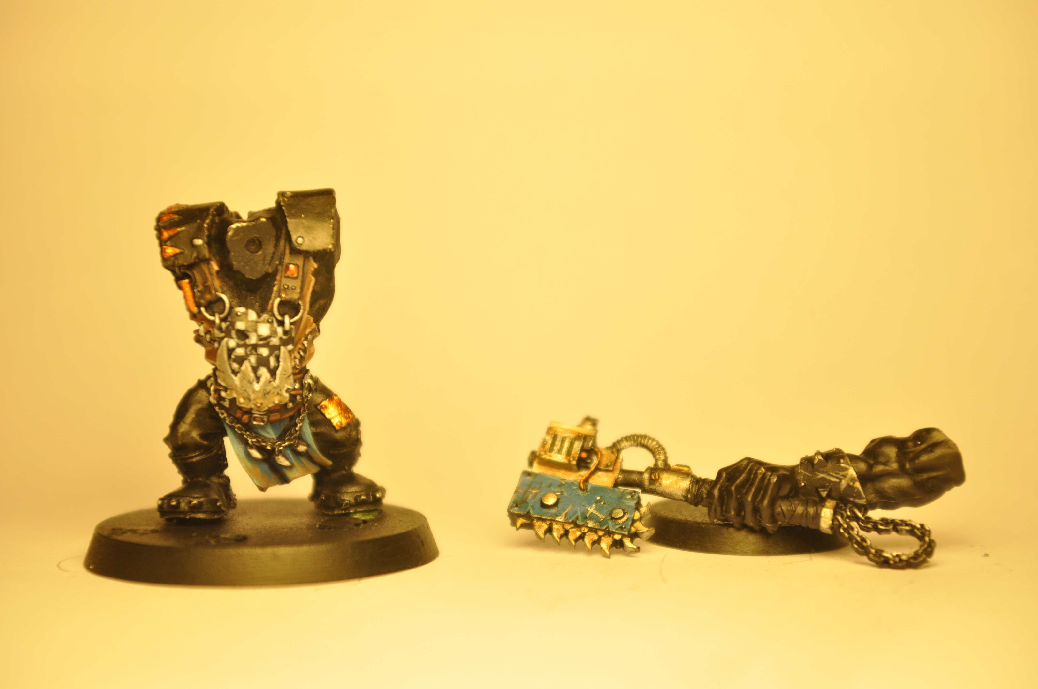 I've also converted a Painboy for my army out of the Mad Dok Grotsnik model, and the prodder from the plastic gretchin kit. I replaced the power claw, as it looked pretty average and the blades weren't choppy enough for me, haha.