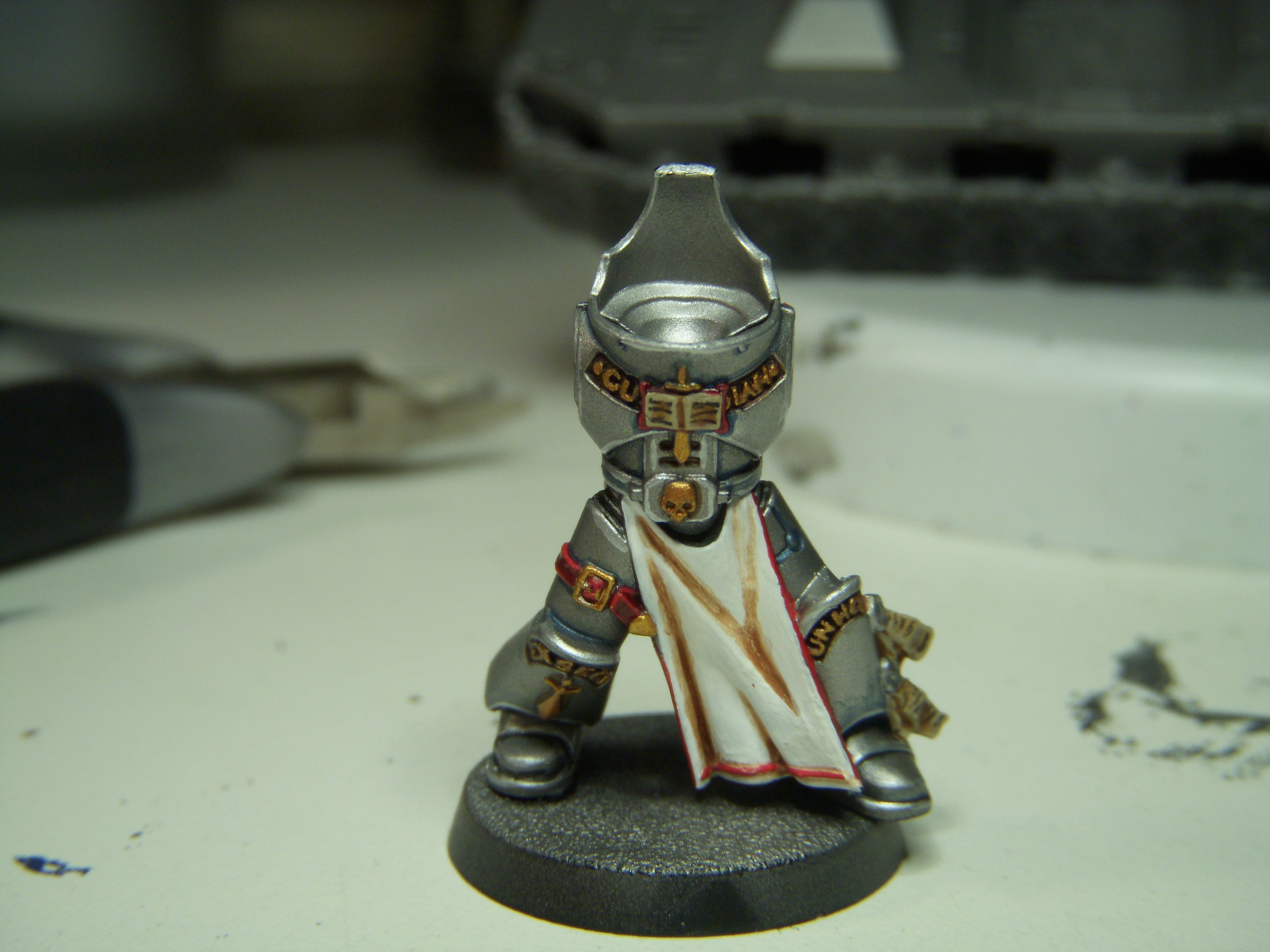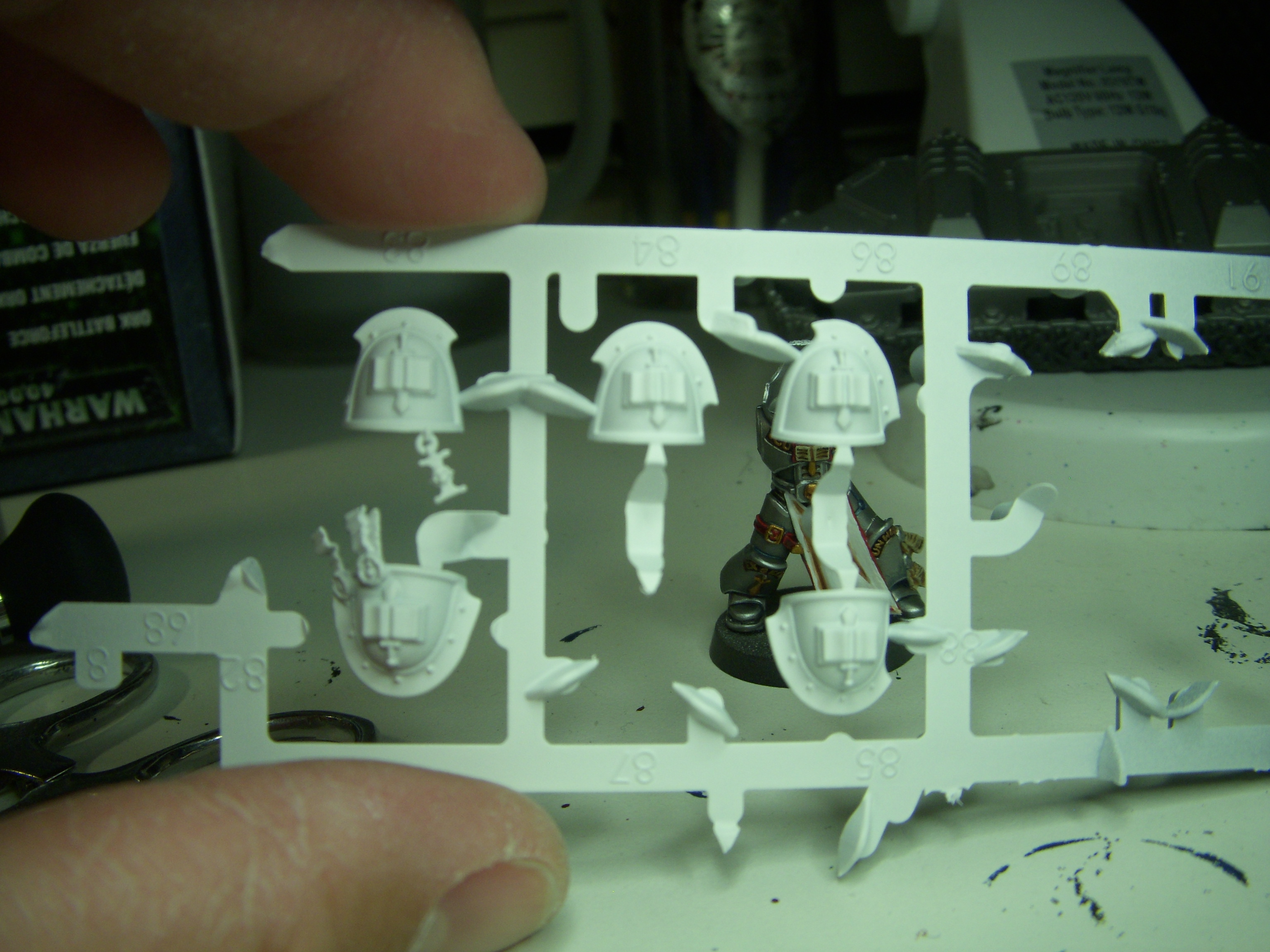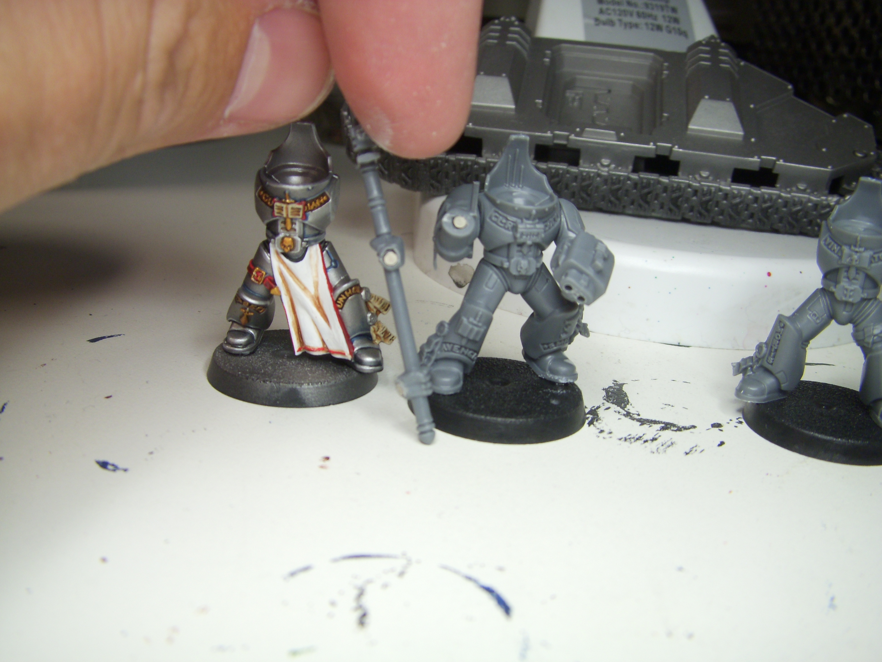 So, because i'm jumping on the GK bandwaggon, I decided that I would post my bandwaggoningess on the interwebs for everyone to see. those of you who have seen my work before, know that I don't tend to stick to Codex colors when it comes to painting an Army (My Devine Dragons IG and my Blood Ravens (Blood Angels). This time, however, I really feel that doing Grey Knights in all there intended glory would be fun and diffrent for me. :-)