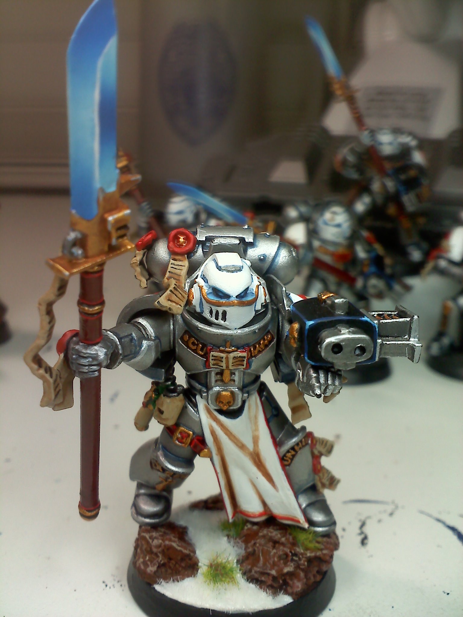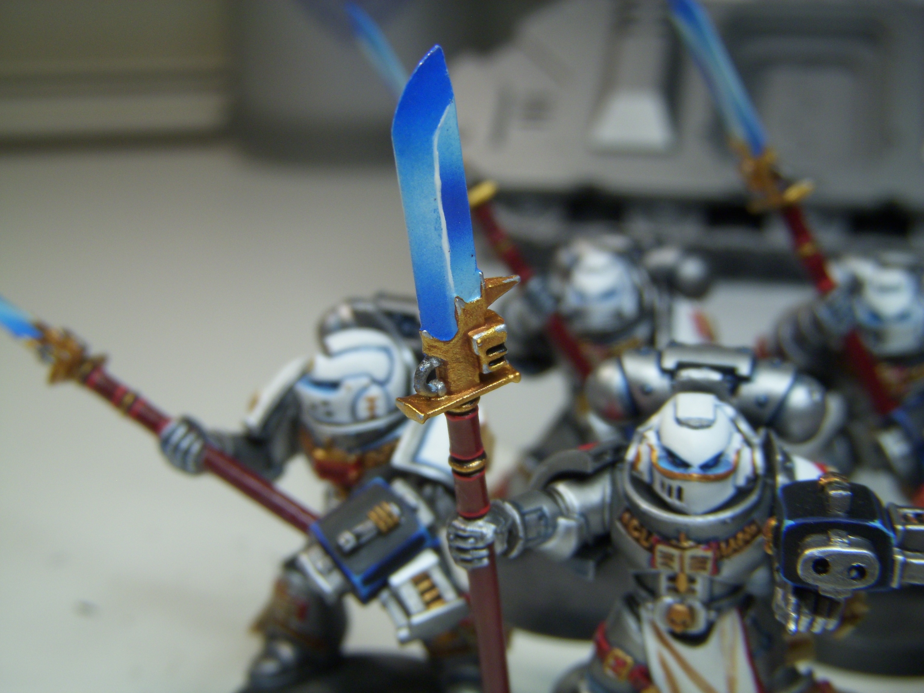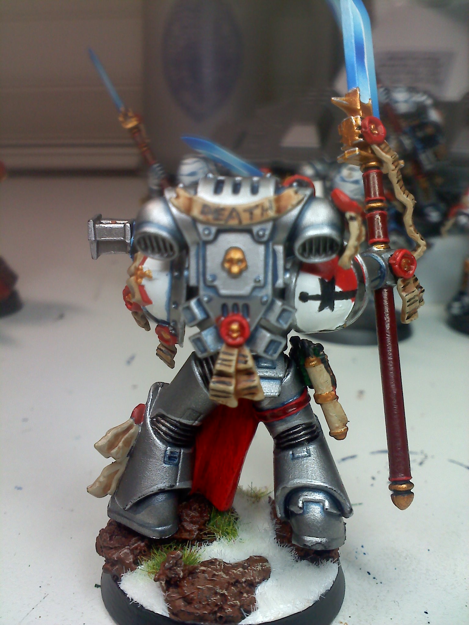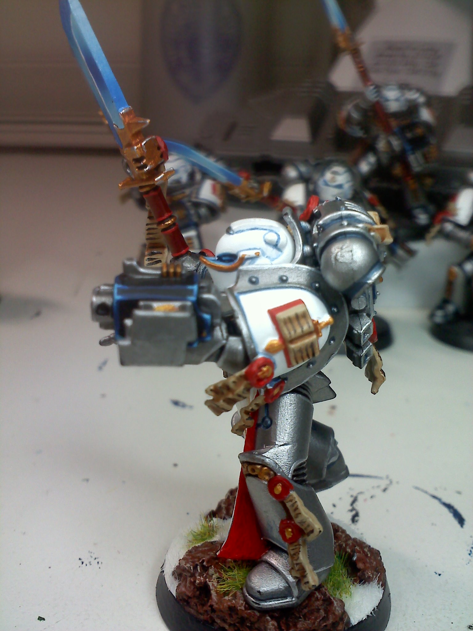 Thank you! I'm also open to any good ideas for basing! I'm at a loss at how i want to base them. theyre going to be a small elite army so buying resin bases for the whole thing isn't out of the question. My first knee jerk reaction was to go with Grey slate or even snow covered but at this point i'm open to any suggestions. :-) Oh, the power weapons (Which should hopefully get done this weekend) will be the White faded to blue faded to black like GW has it. with the air brush it's very simple to get the gradual shaded look. I'll post the Link to the freakin Kick butt Youtube video on how to do it when i find it!