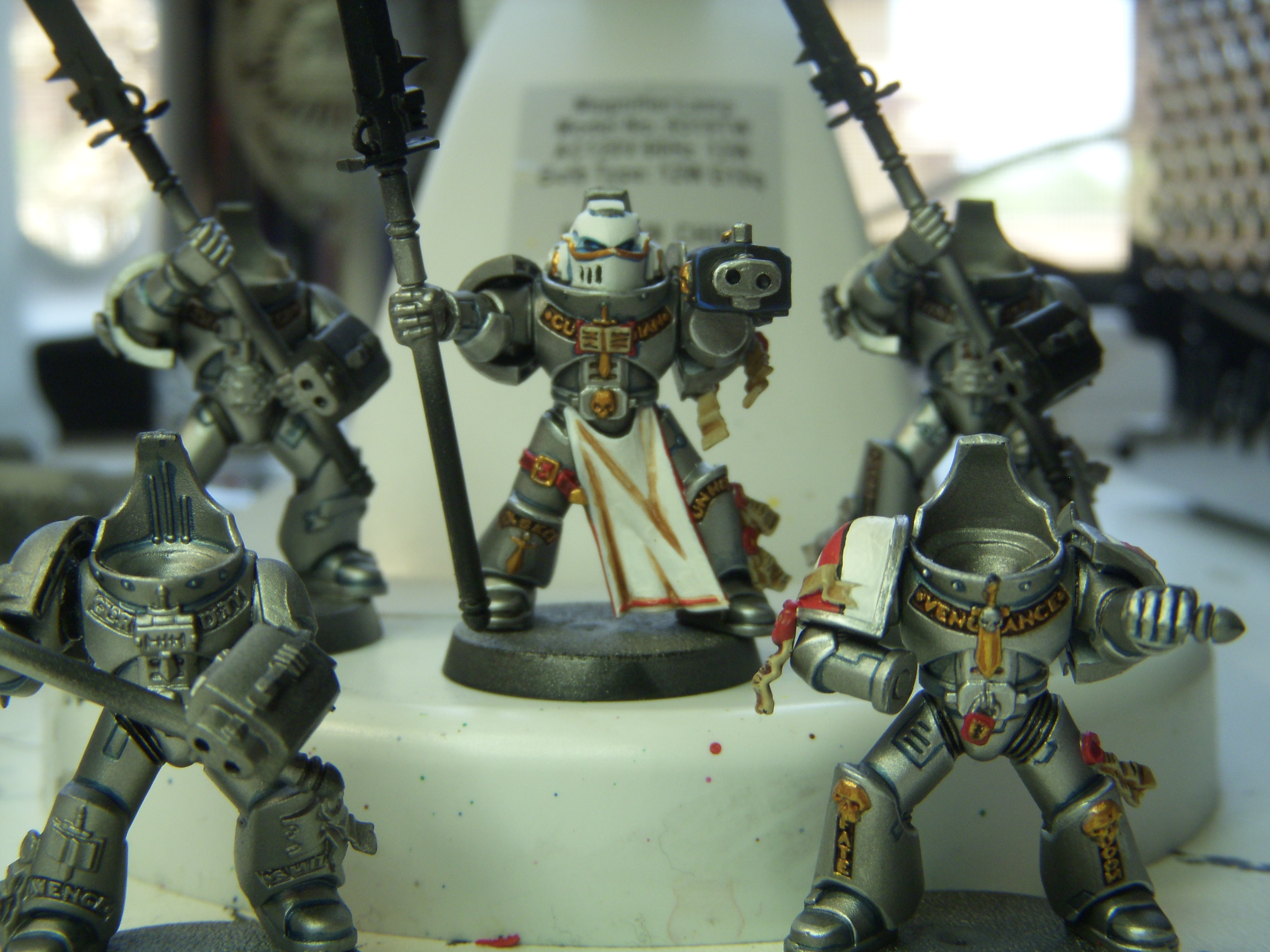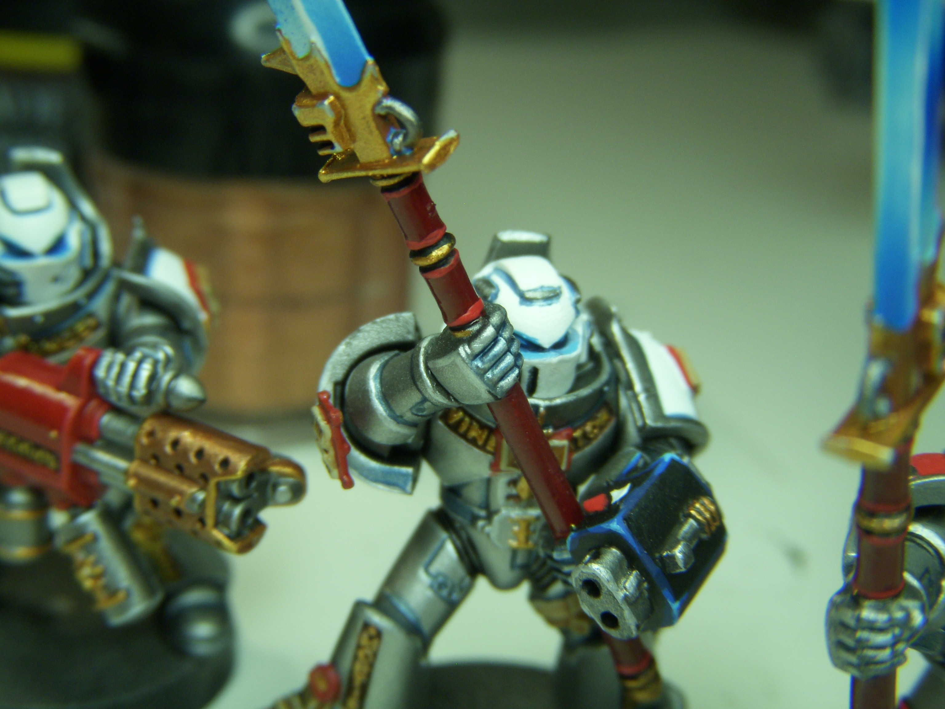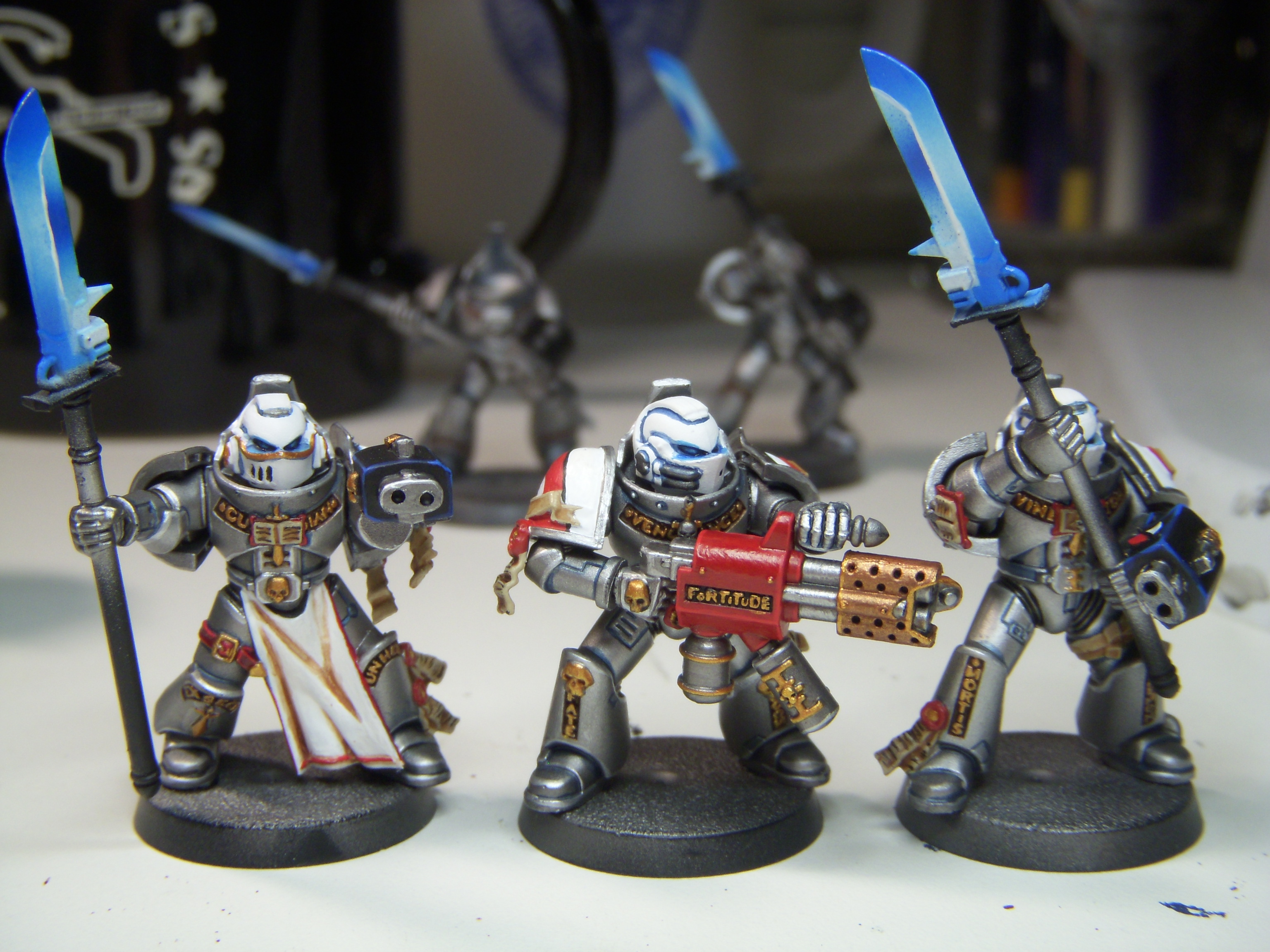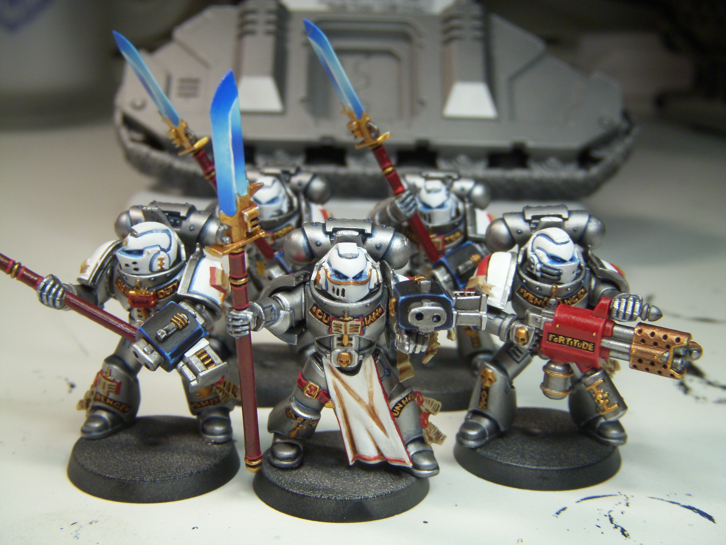 Thank you! I'm also open to any good ideas for basing! I'm at a loss at how i want to base them. theyre going to be a small elite army so buying resin bases for the whole thing isn't out of the question. My first knee jerk reaction was to go with Grey slate or even snow covered but at this point i'm open to any suggestions. :-) Oh, the power weapons (Which should hopefully get done this weekend) will be the White faded to blue faded to black like GW has it. with the air brush it's very simple to get the gradual shaded look. I'll post the Link to the freakin Kick butt Youtube video on how to do it when i find it!