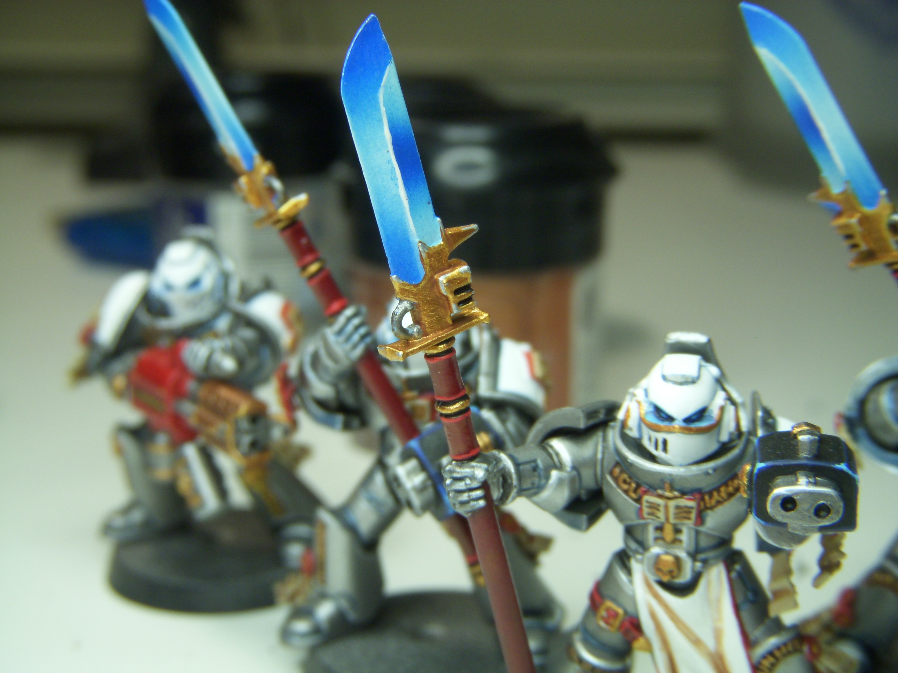 Granted i know there still not done I'm very happy with the way thier turning out. The Power weapons on the Halbreds turned out fantastic. look at my earlier comment for a link on how to get that effect. It's a pretty cool Video that's about as To-the-point as you can get. I still have to finish the halbreds and put back packs on them so i have high hopes for them to be finished pretty soon.