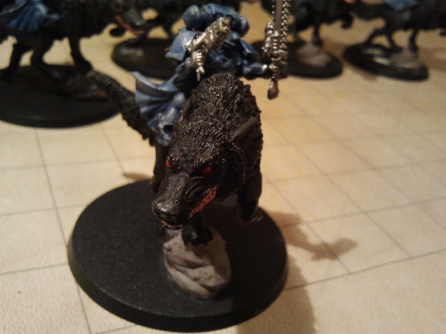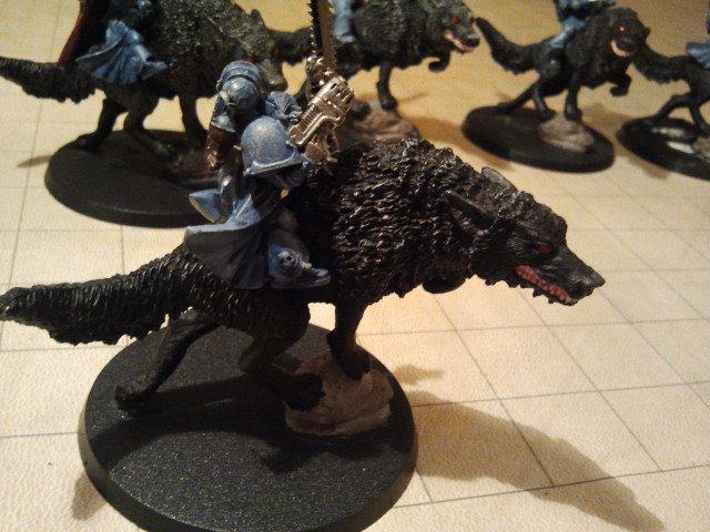 I have 5 custom thunder wolf Calvary models. The are only slight painted, nothing more than a base coat of blue and a wash on them. I'll update pics soon.