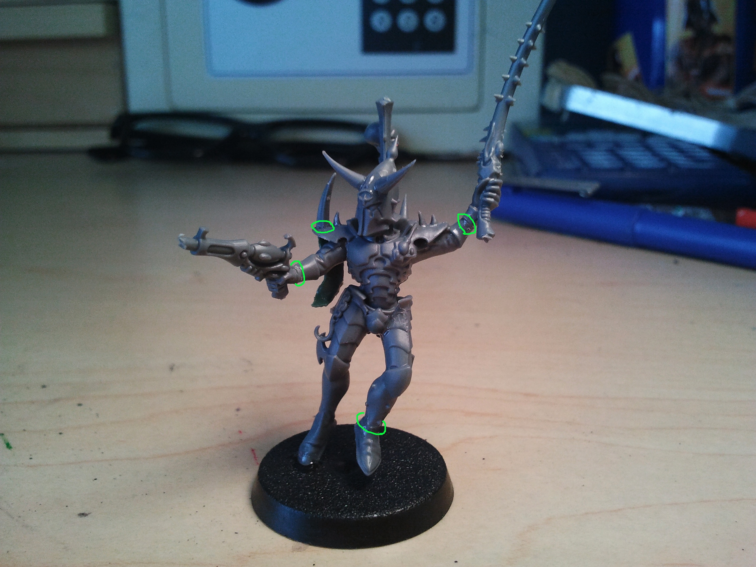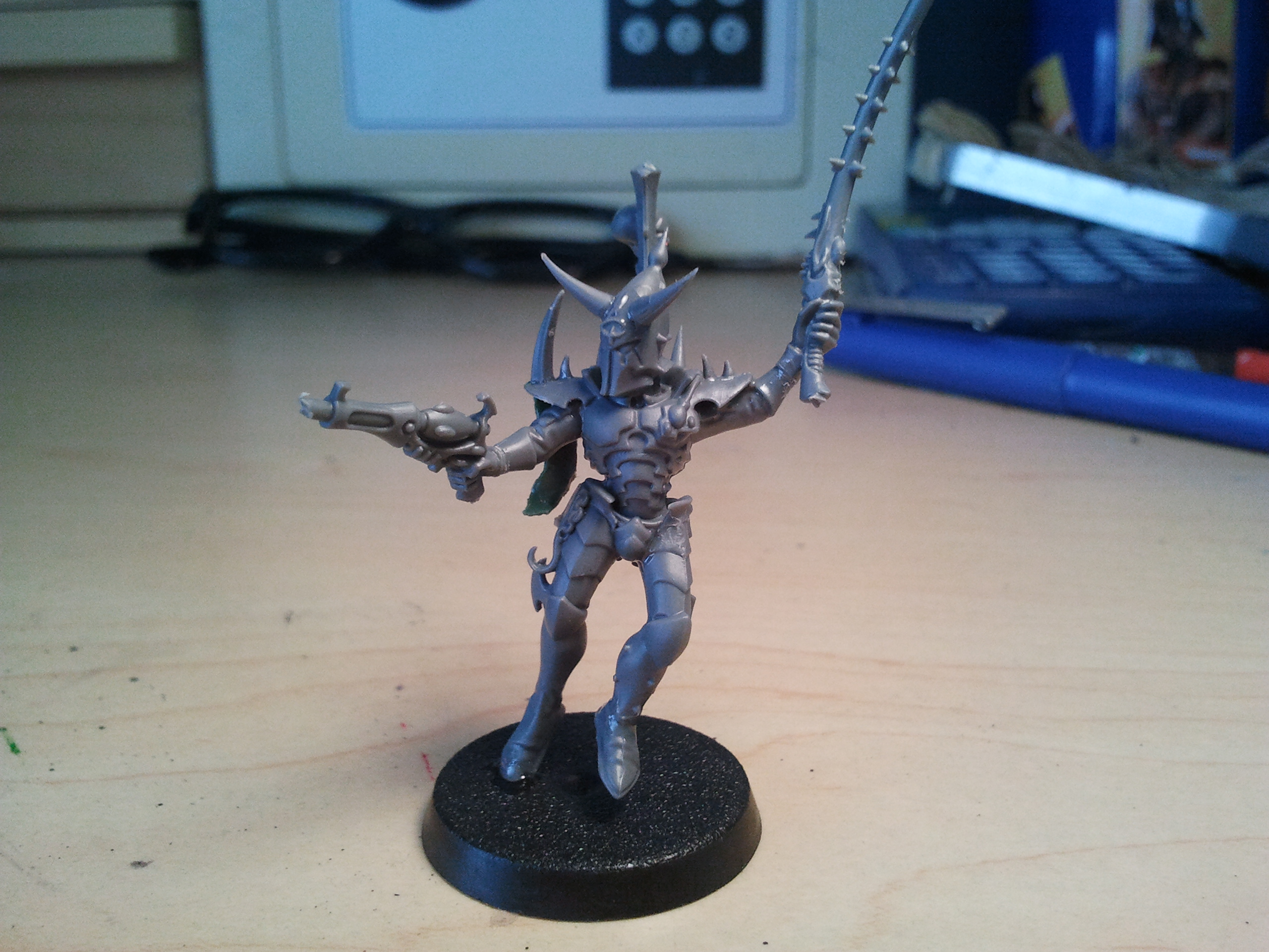 Hey All! Yesterday I was really bored so I decided to see what I could do with some Ravager and Kabalite bitz, this is the product. There weren't many bits leftover in the positions I want them in so I had to do a fair bit of converting. The converting job doesn't look very clean, I'm still getting to the clean up stage. The thing is, he doesn't look very archony so I was thinking I'd try to make a shoulder-cape out of greenstuff, don't know how that's going to turn out. But anyway! Here's what I've got so far.