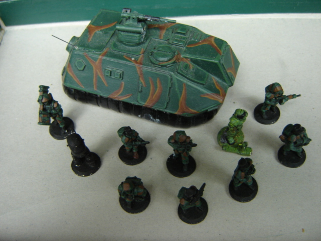 I got hold of these mini's in a bunch of warhammer stuff I bought at a carboot sale. They're no use to me so I'm gonna sell them on e-bay. Trouble is I've no idea what they are so I don't know what to list them as. The ones with the armoured APC look like 25mm scale, the six unpainted ones are 20mm, and the two mechas stand 40mm high. To aid getting them to a loving home - has anyone any ideas what they are or what gaming system they're for?