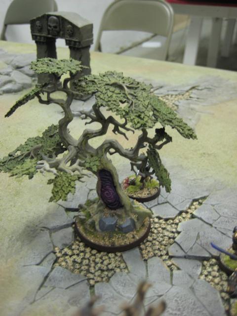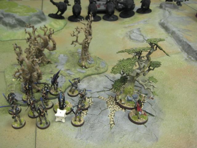 The haemonculus leaves the unit and his pain token in the trusty hands of Vect, and moves forward and lays down a webway portal. Vect and the harlequins run into the woods to the left of the portal. I hope I know what I’m doing (Spoiler: No, I don’t).