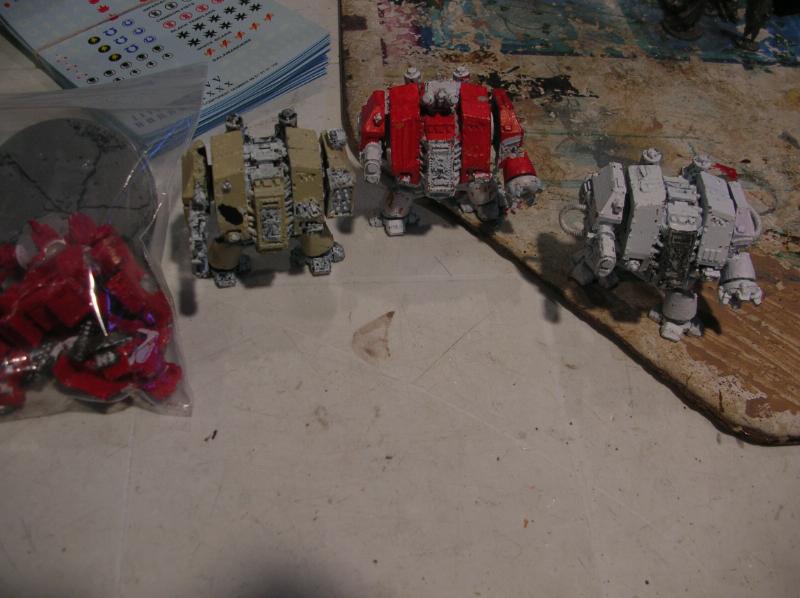 I have the two dreadnoughts in the middle - the lascannon/ ML one and the multimelta/fist one - $20 each, $35 for both!