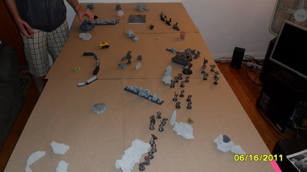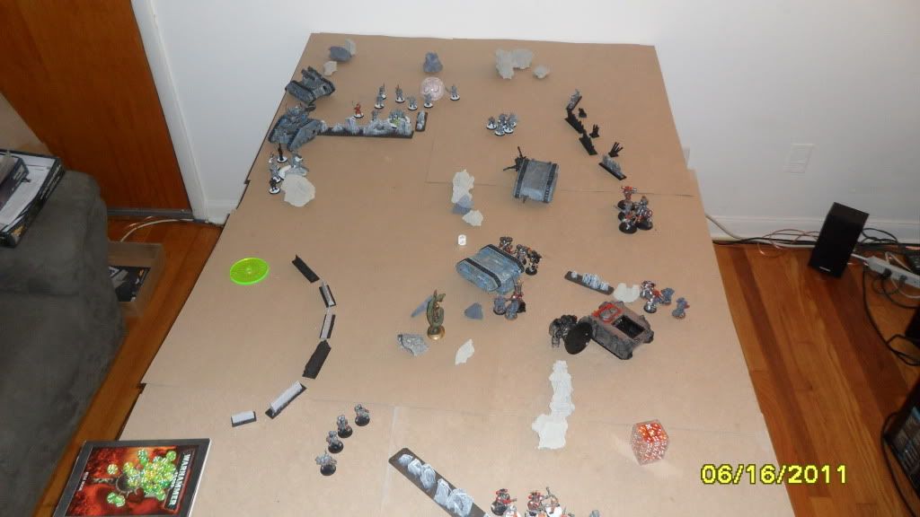 Termies manage to pop the vendetta in shooting while the assault marines move closer to my lines. The