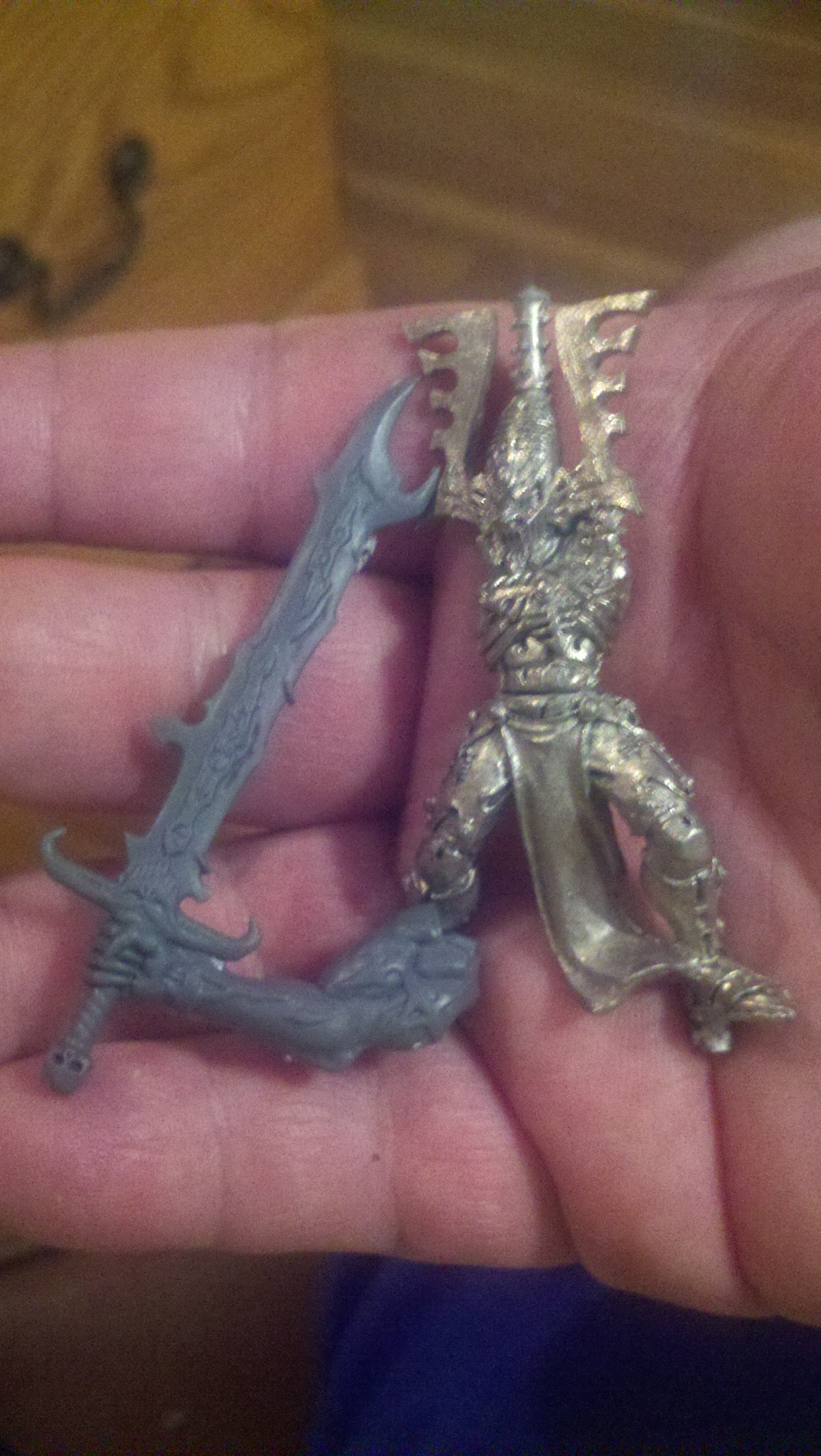 I bought this nice shiny avatar. However, I think he really needs to feel the taint of Slaanesh... to heck with all this Bloody Handed business, this guy wants to party with loose women... or daemonettes... he really doesn't care.