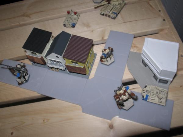 The small-scale S6 roads were a great product. I was hoping for another piece or two to prevent as much of a 'grid' of fire-lanes, but was also on the lookout for opportunities to make my own (Model a base plate and road piece pre-connected with a structure toppled over to block the road, for example).