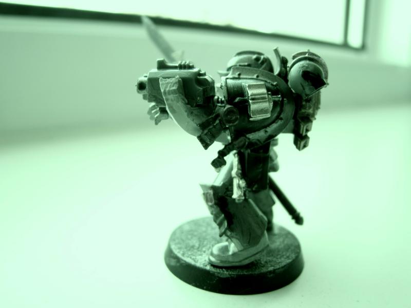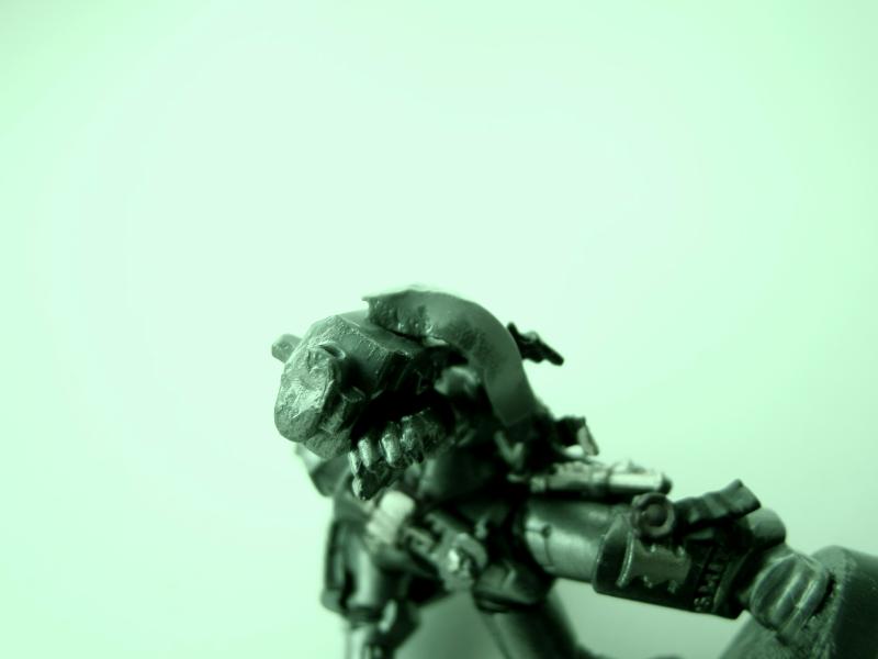 Thus I stick with plastic and even light metals like alu whenever possible. Added a bit plastic to an arm, and maybe should add anpther piece inbetween the arm and the backpack. ( drilled out the barrels too, but after the pics taken...).
