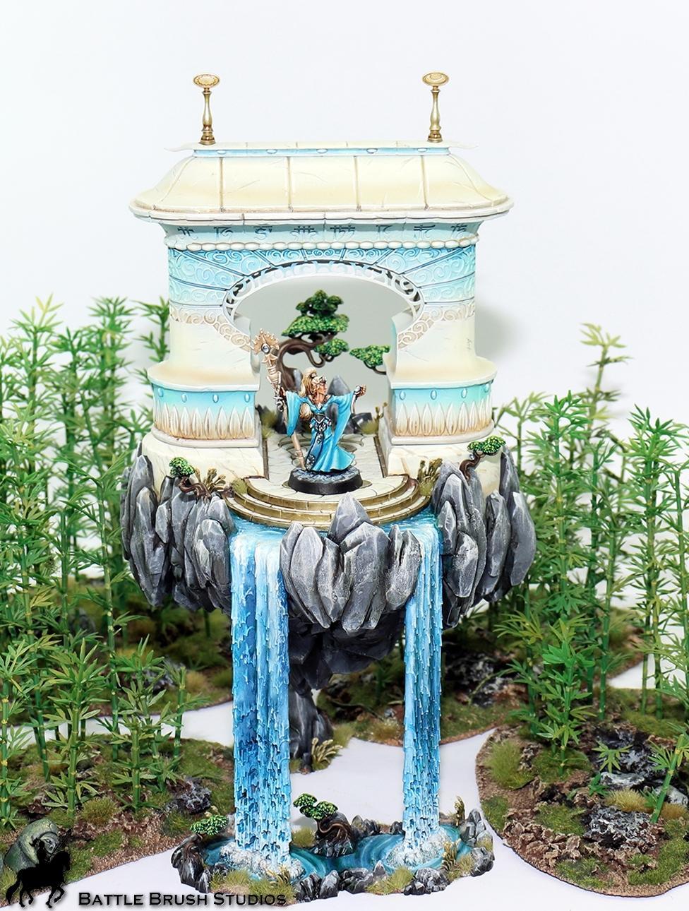 I have to admit that I like that Lumineth range. Well, some of the figures. And I do like this completely overblown hippedy-hippedy-high fantasy piece of terrain. So I got it. For Elves/Eldar photos mostly, but it'll also fit the garden on top of a mega corporation's headquarters, the garden of some sci-fi warlord, an arcology, or other sci-fi things quite nicely I think.