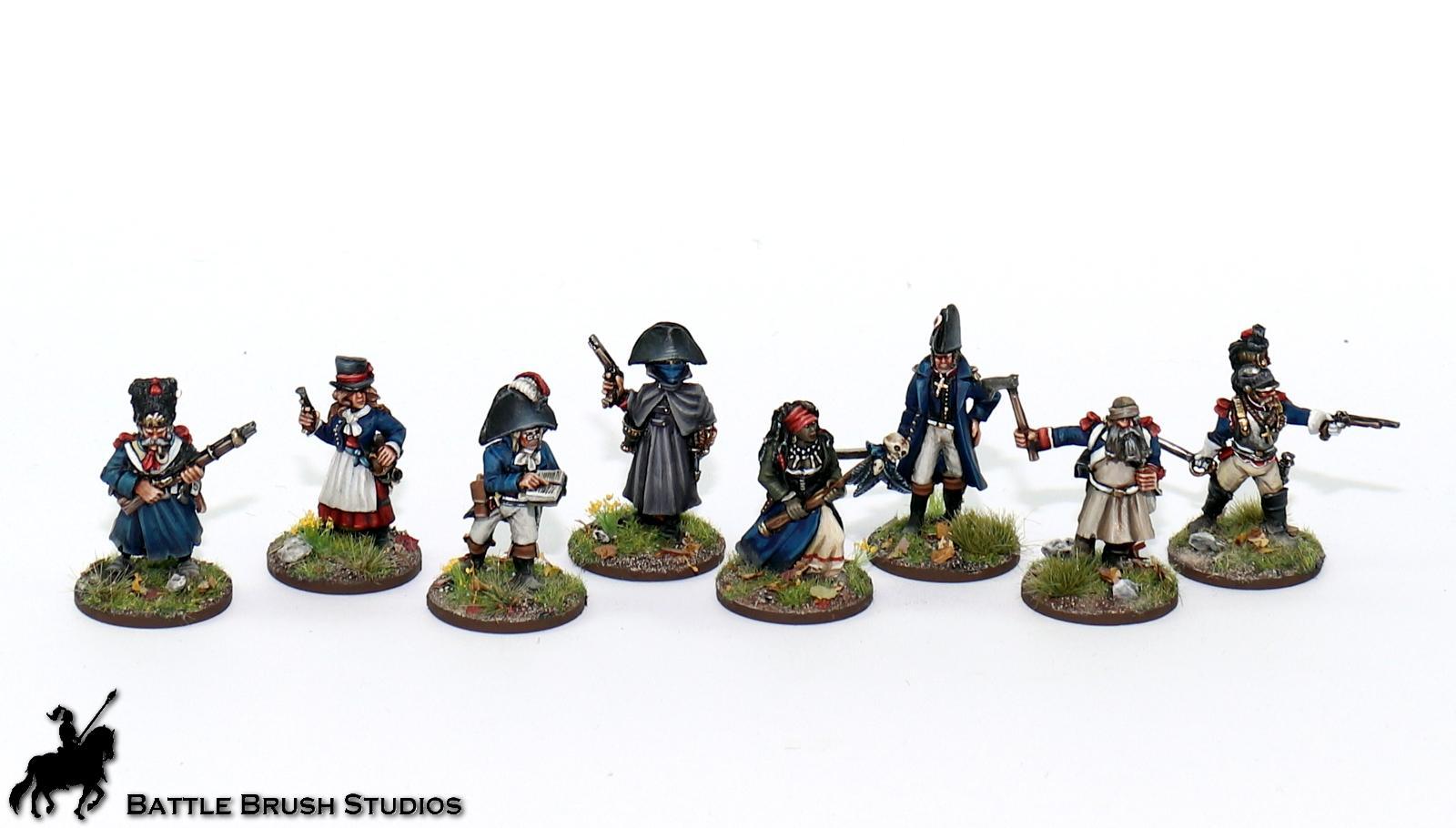 Repurposed for fantasy gaming, but painted pretty much historically accurate. Very interesting dudes. Loads of whites to vary and balance. Figures by Fireforge.
