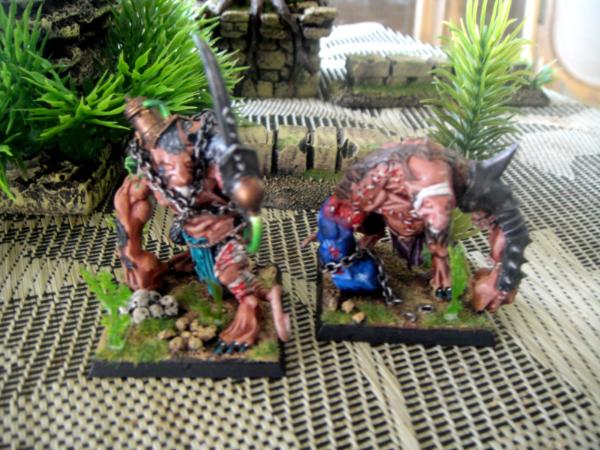 Next I'm going get a battalion and a abomination. Haven't done any major conversions so far but I'm planning to do a complete over hall on the older rat ogres as i hate their look. Also not too soon, i'll be making a Lustria game board. Because its a tiny army i won't be including any storm of magic monsters any time soon. As for the little background that i have made here it is. The Warlord clan Shryke was driven from skaven blight after they "accidentially" tried to collapse one of clan skyres larger warpforges. they established a base of operations in lustria to try and learn some of the more powerful secrets of magic form the slann. do to the incedent with clan skyre, the few warmachines that they do own come from clan ektric. they have trained a few of their own master moulders and have experimented on kroxigor to try and mesh them with rat orgres.