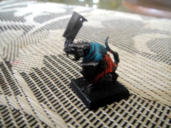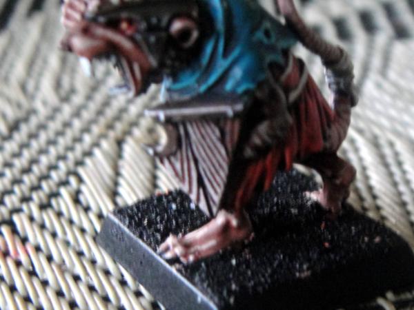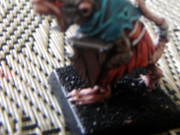 haha nice i've thought of skaven snorting warpstone powder before. but i just had an idea. since both of his eyes are covered he shall be called skritt no eyes, but he never tells his employers that he's blind as this could be bad for buisness. And I've fully based my entire painted army.
