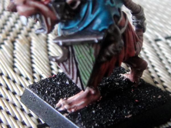 I agree with Cricket on both points: I love the blues (most skaven armies are pretty dark, so it's a nice change) and more work on the bases would not be amiss.