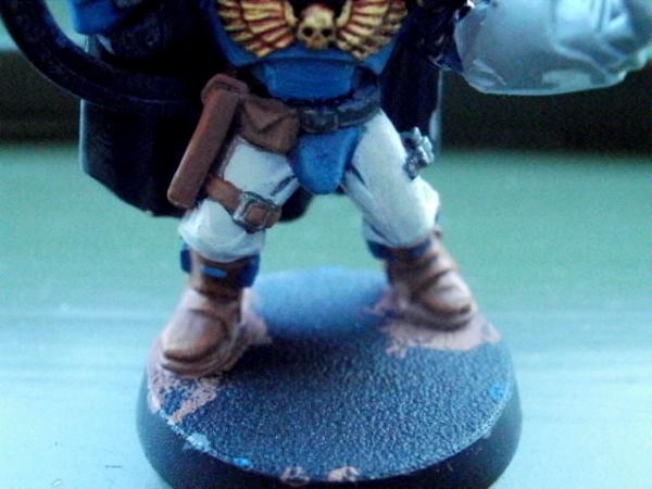 So I'm painting up some Blood Raven Scouts, and I'm up to the unidentified thing on the left leg. Here's someone else's gallery picture, which kinda shows it: