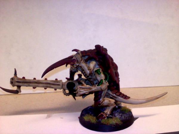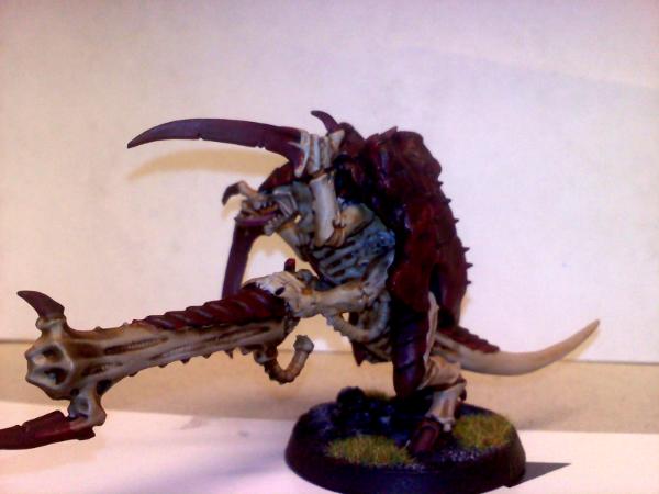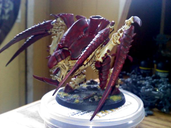 Hey everybody, Funny story....so I was going about painting my Hiveguard which I was just itching to paint, getting the chitin/skin done and I looked to the side of my painting desk and I see my Parasite of Mortrex, now I dont know if I was hallucinating from all the primer fumes but it looked like it was frowning, begging to be finished painted, so in my trance like state I said OKAY!  so before I even continued painting my Hiveguard I finished my Parasite, here he is