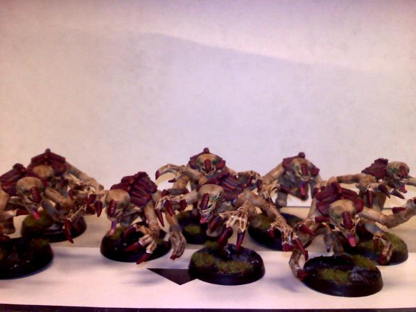 Right here is my first attempt at my scheme which I did on a hormagaunt, After I was happy with the scheme I continued to paint 11 more of them