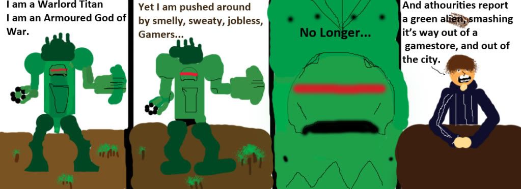 Well, here goes. Feel free to add comments. as every ten comics I will post on a new topic,, called "DiceMilleniumDakkaDakkkaArchives"THAT one there should be no posting on.THIS one, is for the comic itself, as well as comments and requests for a specific joke. There WILL be some story arcs, but mostly, this is for fun. If you would like to submit a fan-comic with the same characters, simply PM me it and I will post it up here and on the Archives.